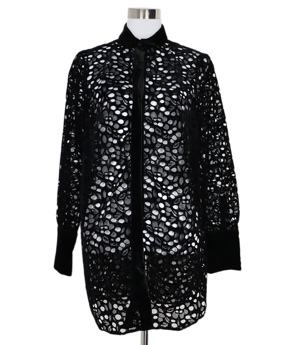 Akris Punto Black Velvet Cutwork Jacket sz 10