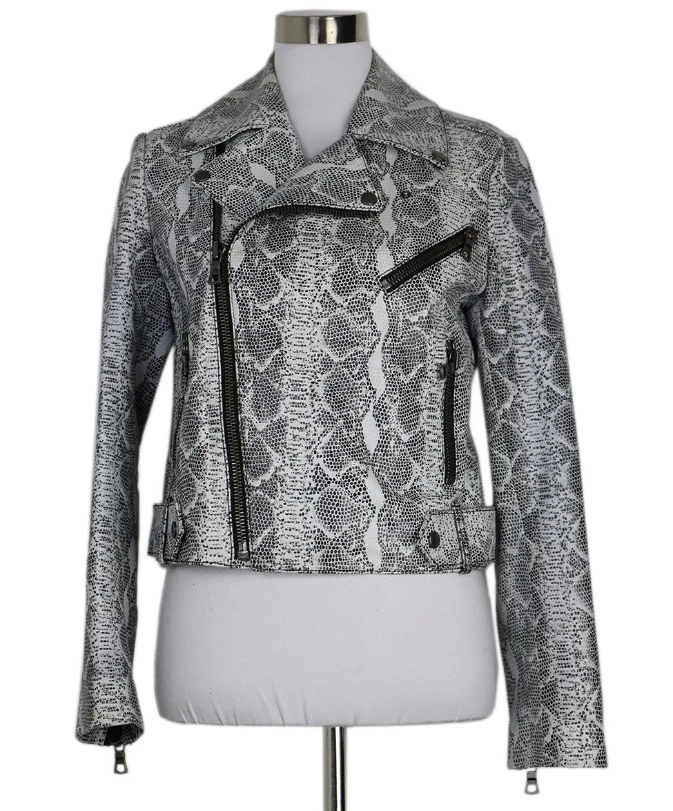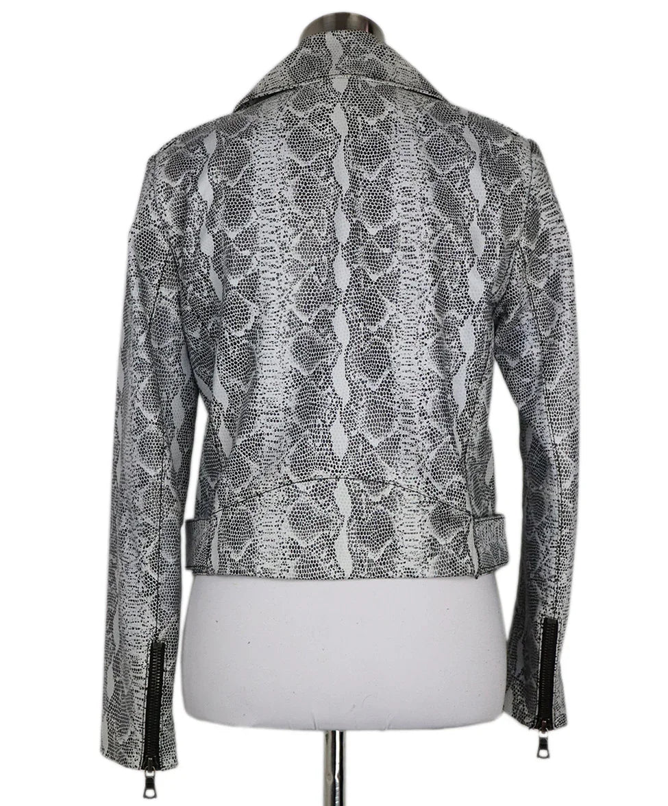 Alice + Olivia B&W Snake Print Leather Jacket sz 8