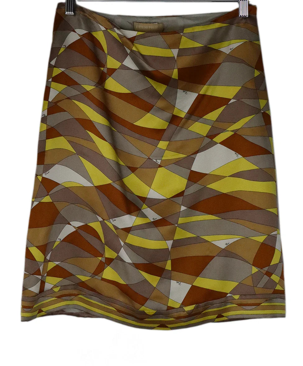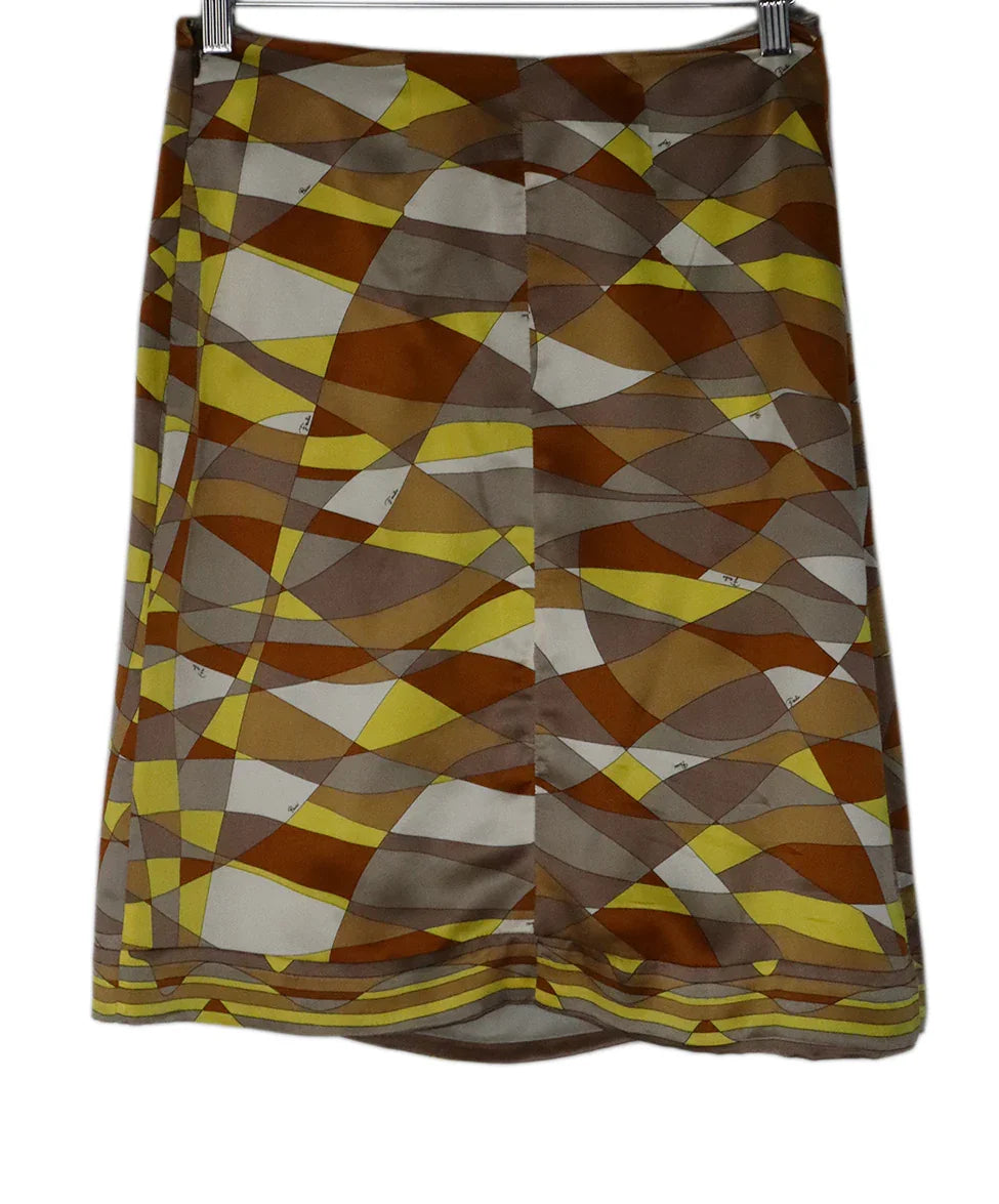 Emilio Pucci Size Yellow Brown White Silk Skirt sz 6