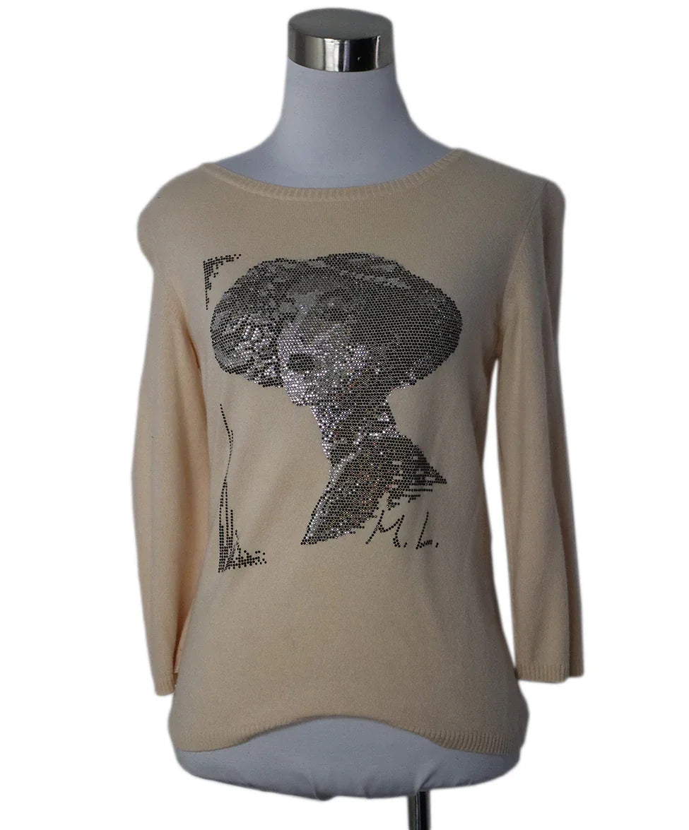 Escada Peach Cashmere Brown Crystal Sweater sz 4