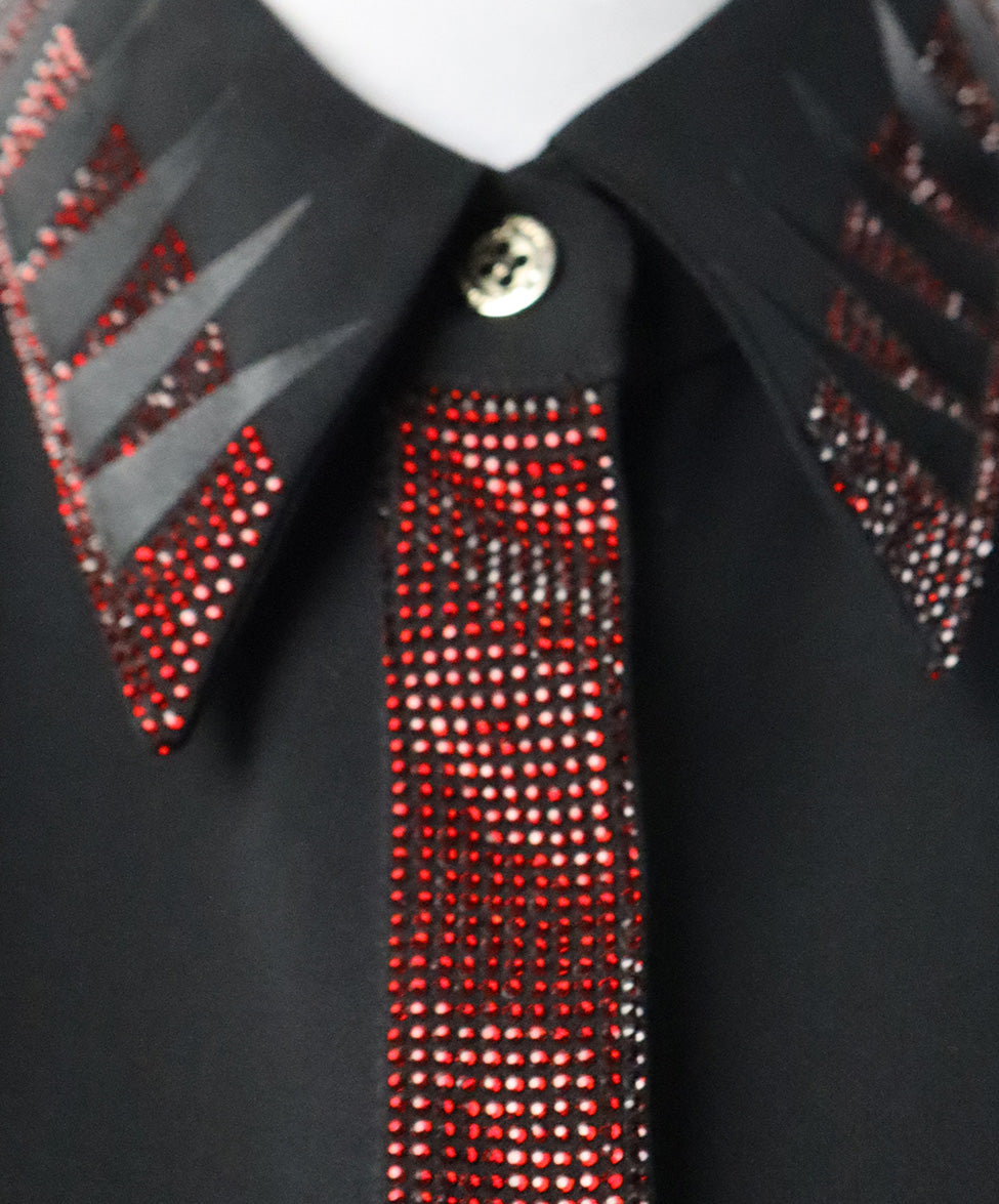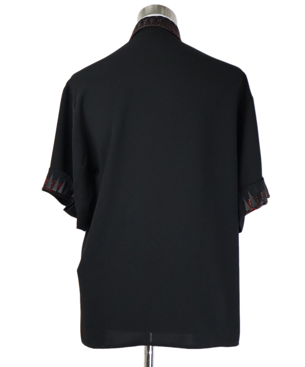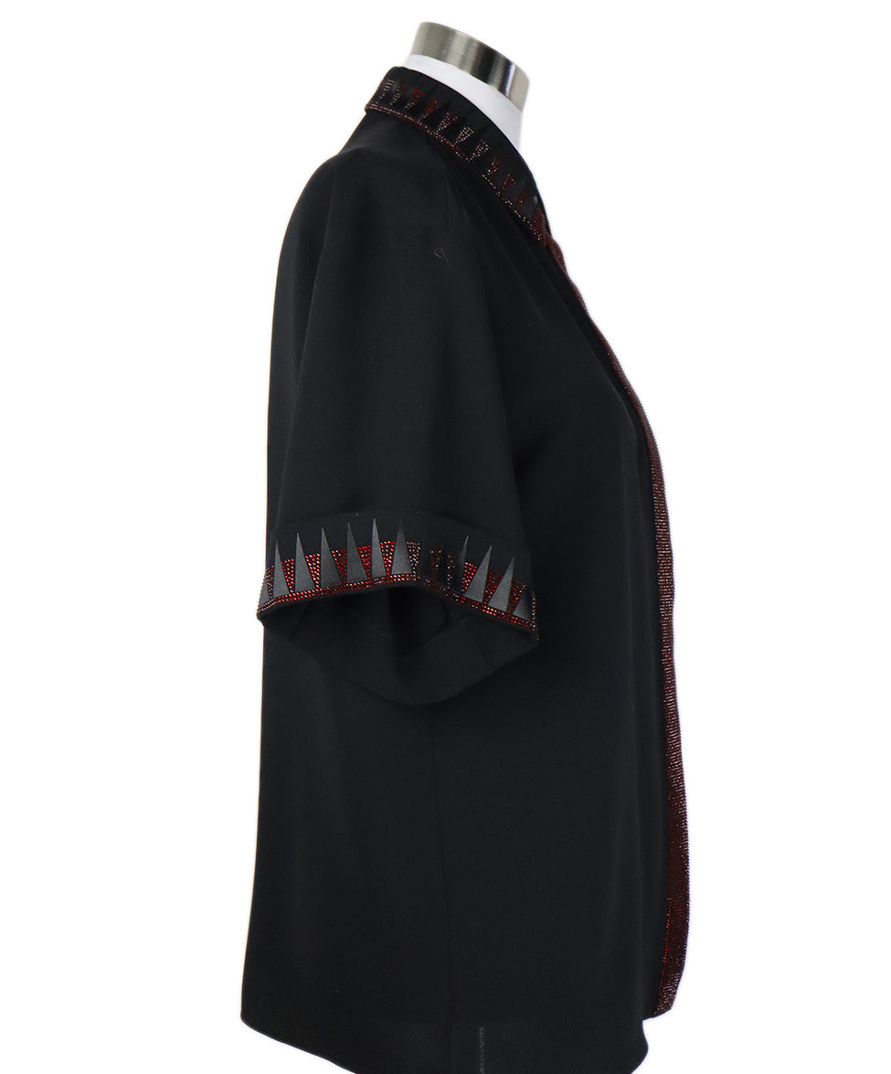 Versace Black Polyester Red Crystal Trim Top sz 4