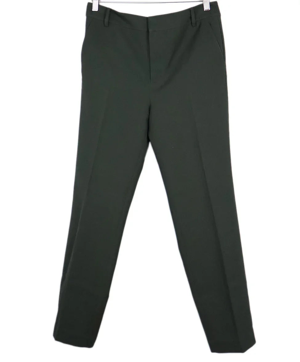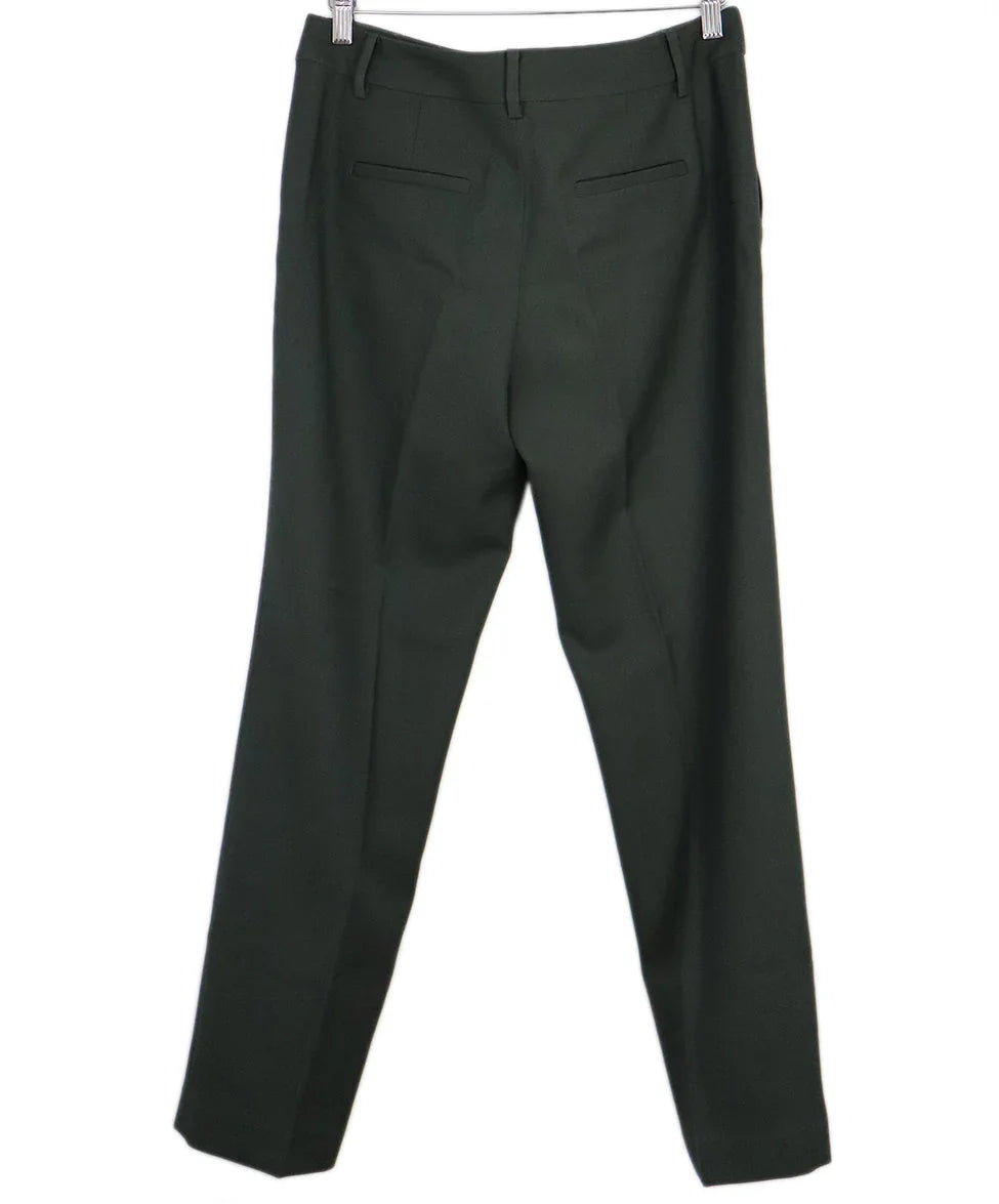 These pretty Tibi wool pants feature a classic green sage color, expertly tailored for a refined and versatile silhouette. Crafted from high-quality wool, they offer both comfort and timeless style, ideal for elevating professional and casual wardrobes.