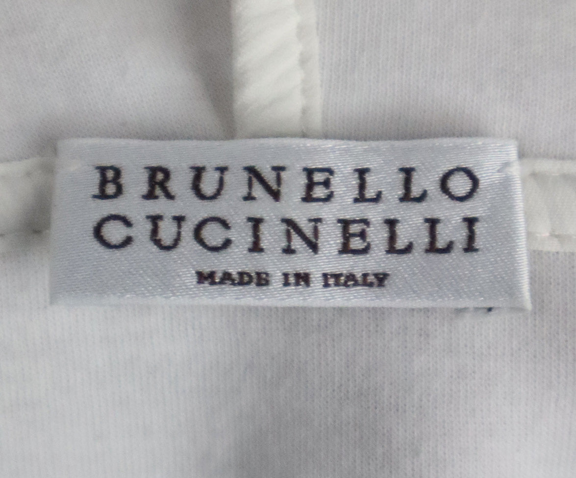 The Brunello Cucinelli ivory cotton and silk hoodie in size 2 blends classic minimalism with street style, offering refined comfort and effortless cool.