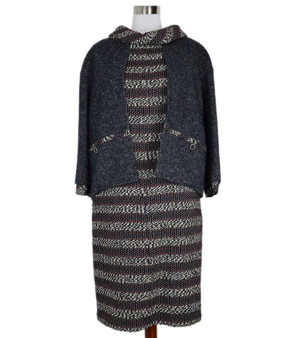 Chanel Blue White & Red Tweed Dress sz 14