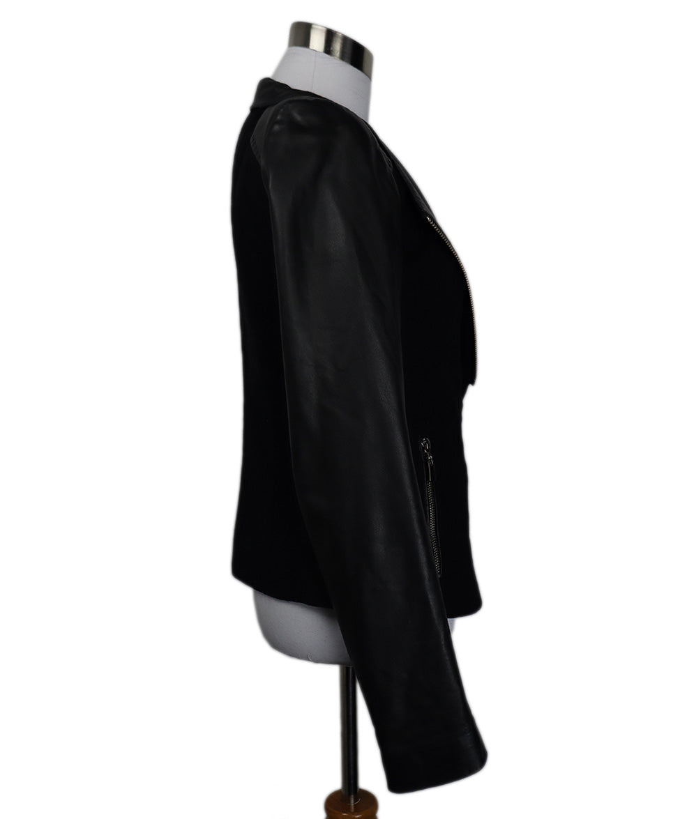 Anne Fontaine Black Leather Wool Jacket sz 0