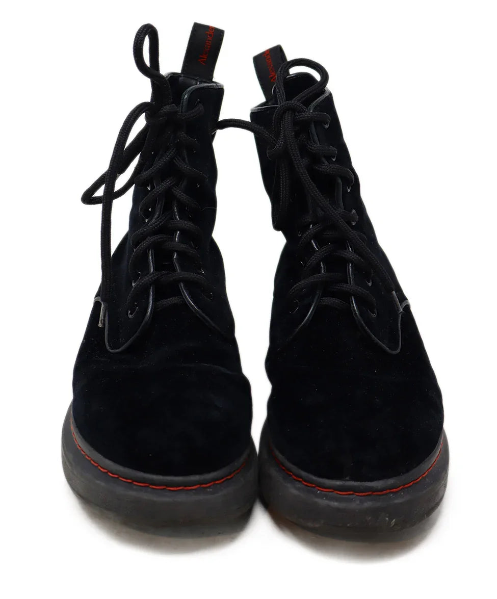 Alexander McQueen Black Velvet Lace Up Booties sz 7