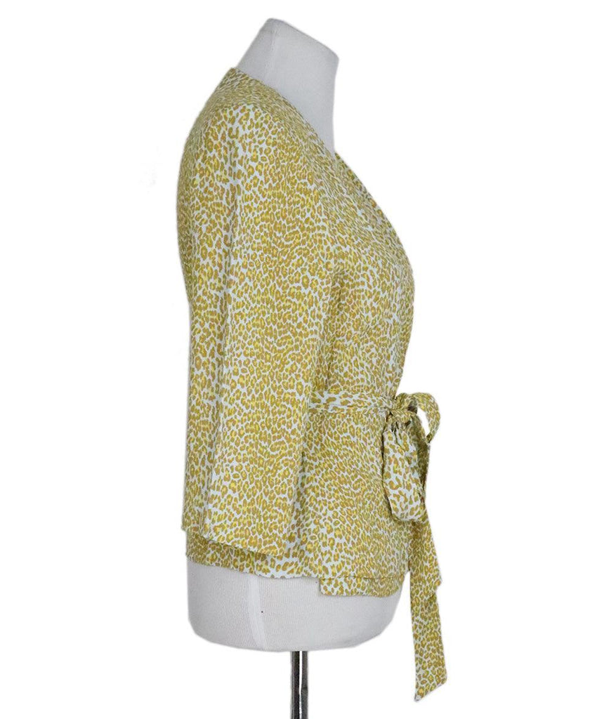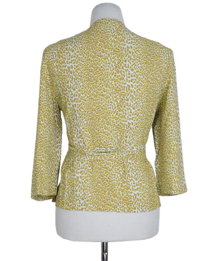 DVF Yellow & Blue Leopard Print Blouse sz 10