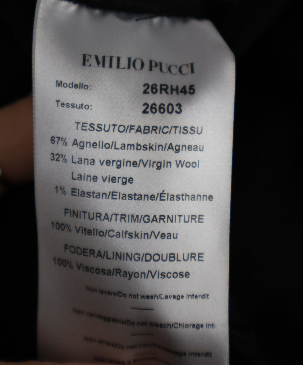 The Emilio Pucci black wool and leather dress in size 6 blends minimal design with an edgy twist, featuring sleek lines and bold material contrast for a modern, sophisticated look.