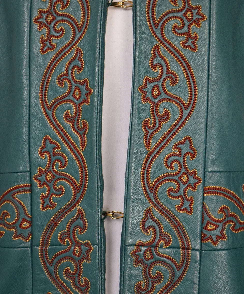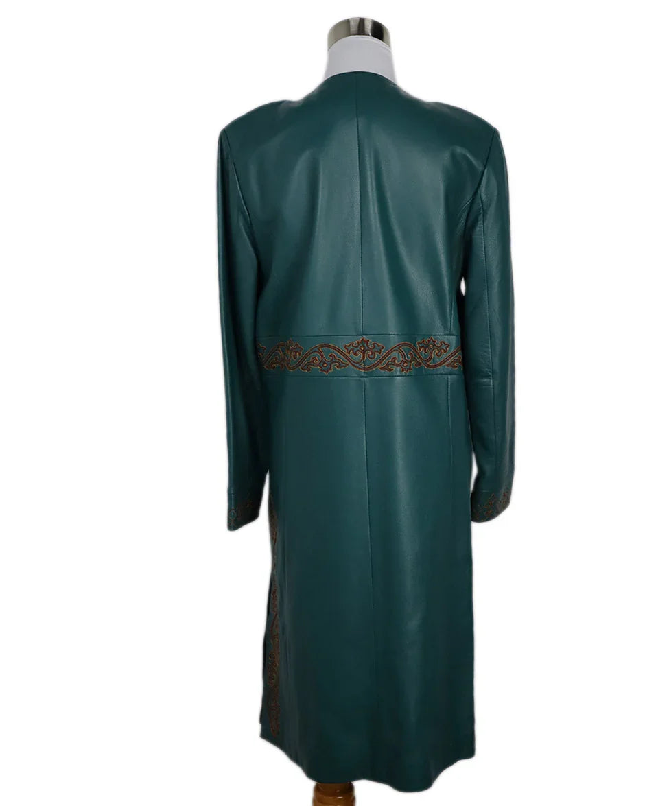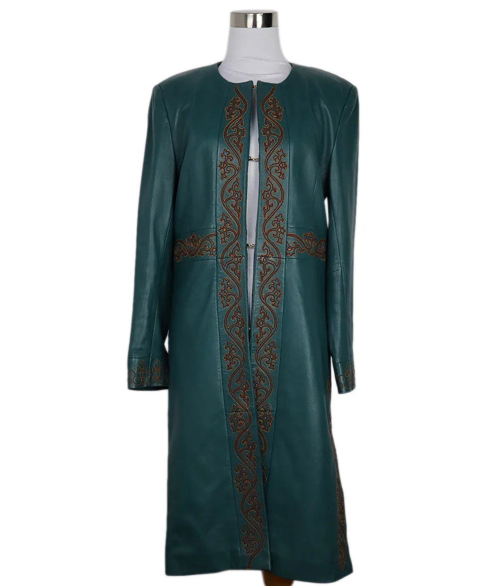 Catherine Malandrino Teal Embroidered Leather Coat sz 4