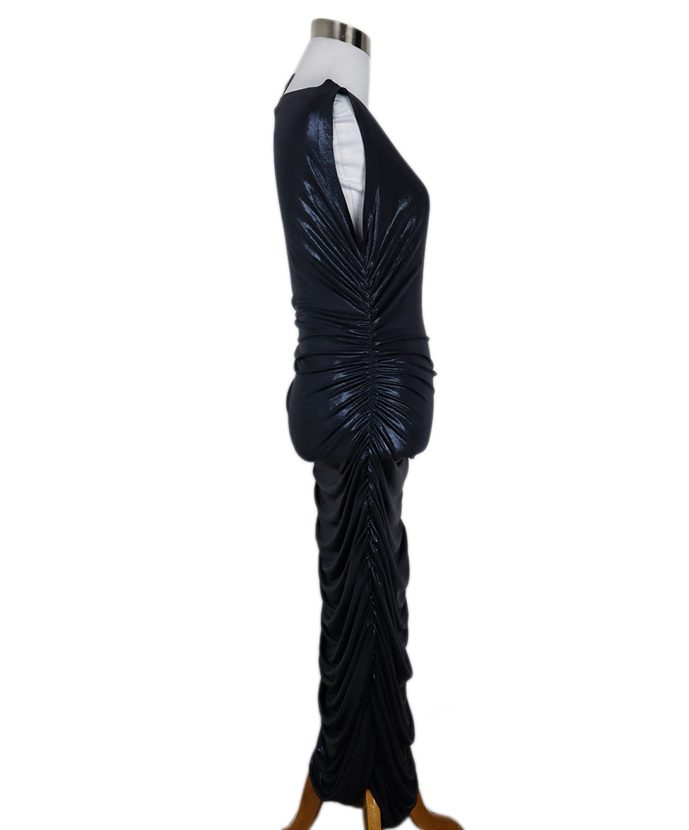 Norma Kamali Metallic Navy Evening Dress sz 2