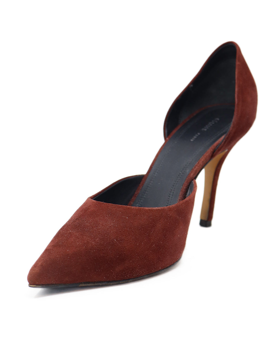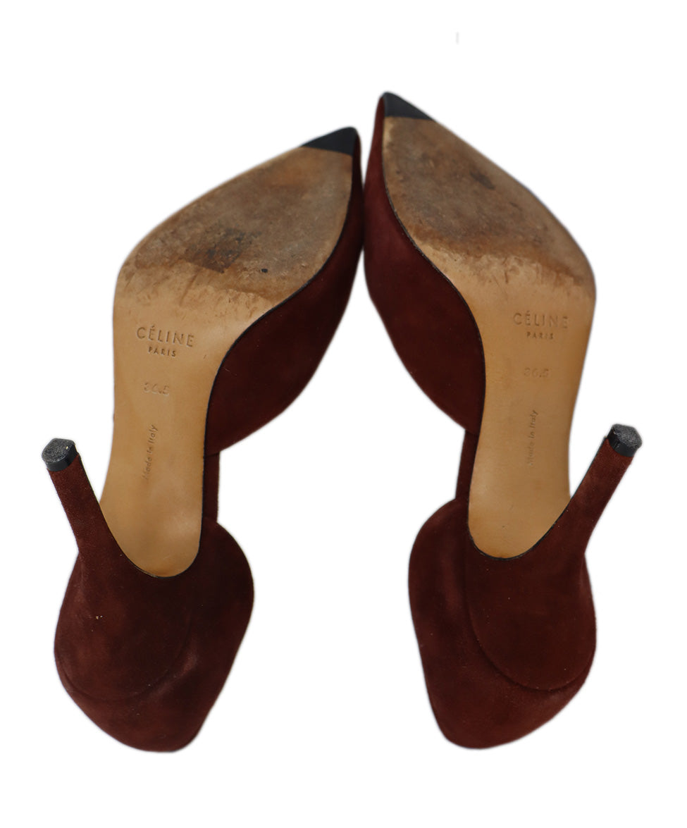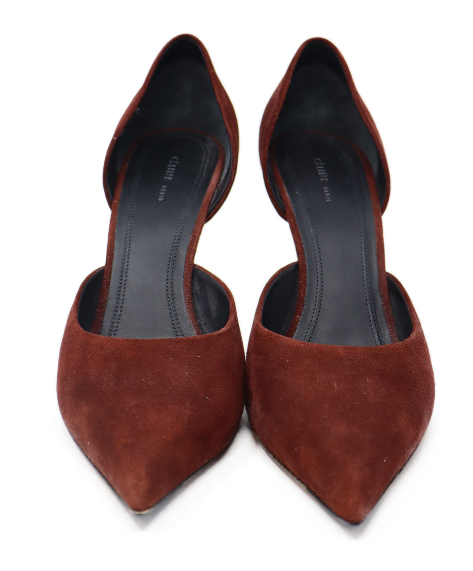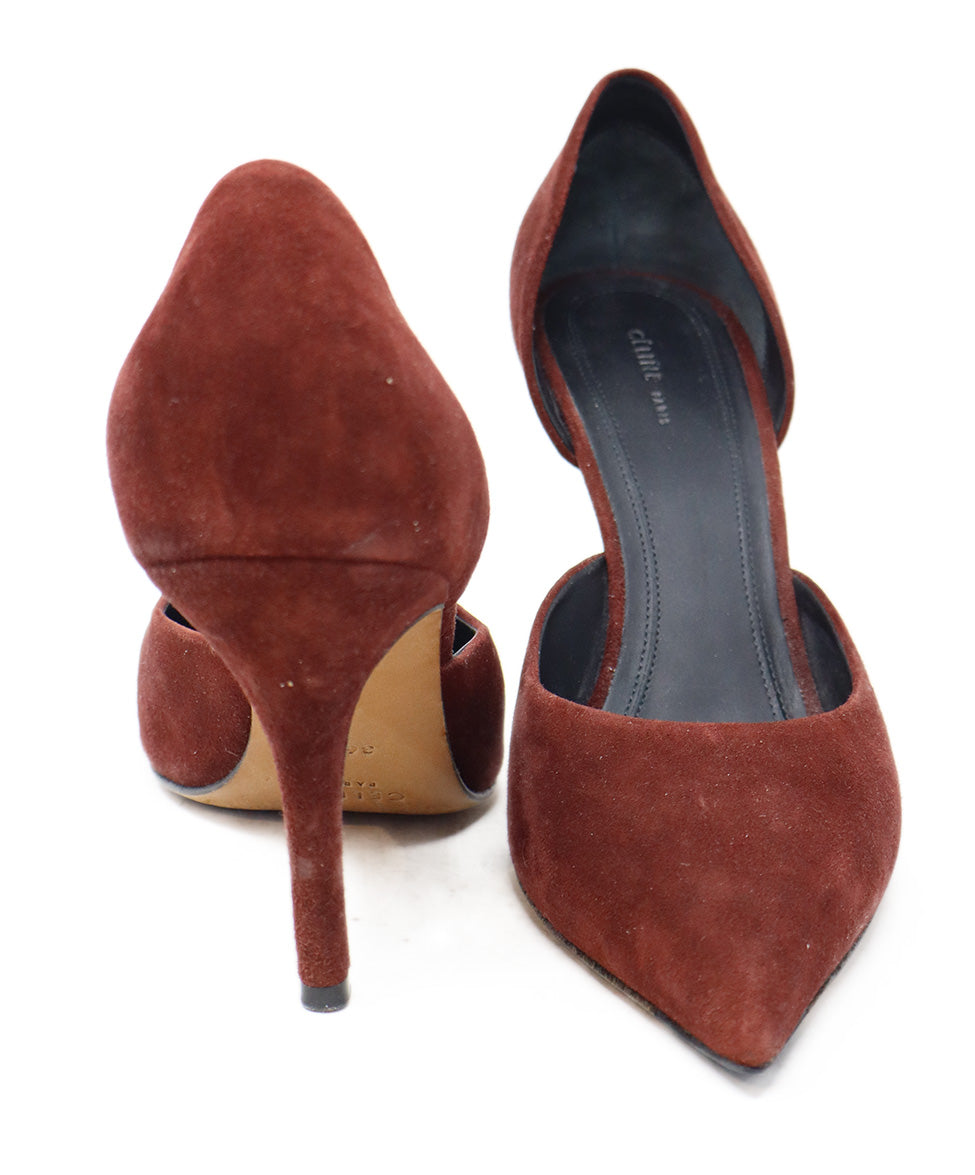Sophisticated burgundy suede heels from Celine in size 6.5. The rich wine tone and luxurious suede construction deliver timeless elegance for elevated everyday wear or special occasions. A refined designer piece that transitions seamlessly from day to evening.
