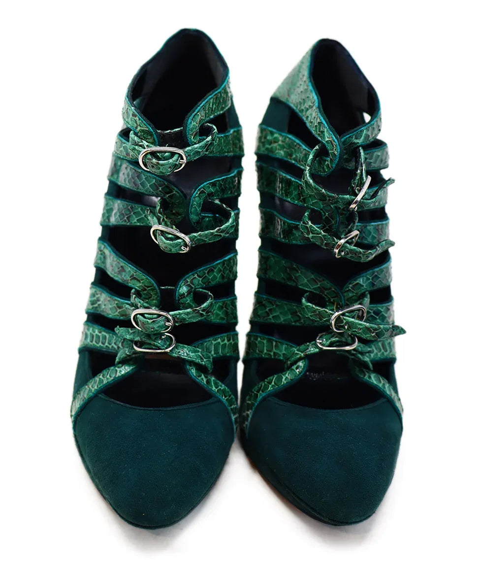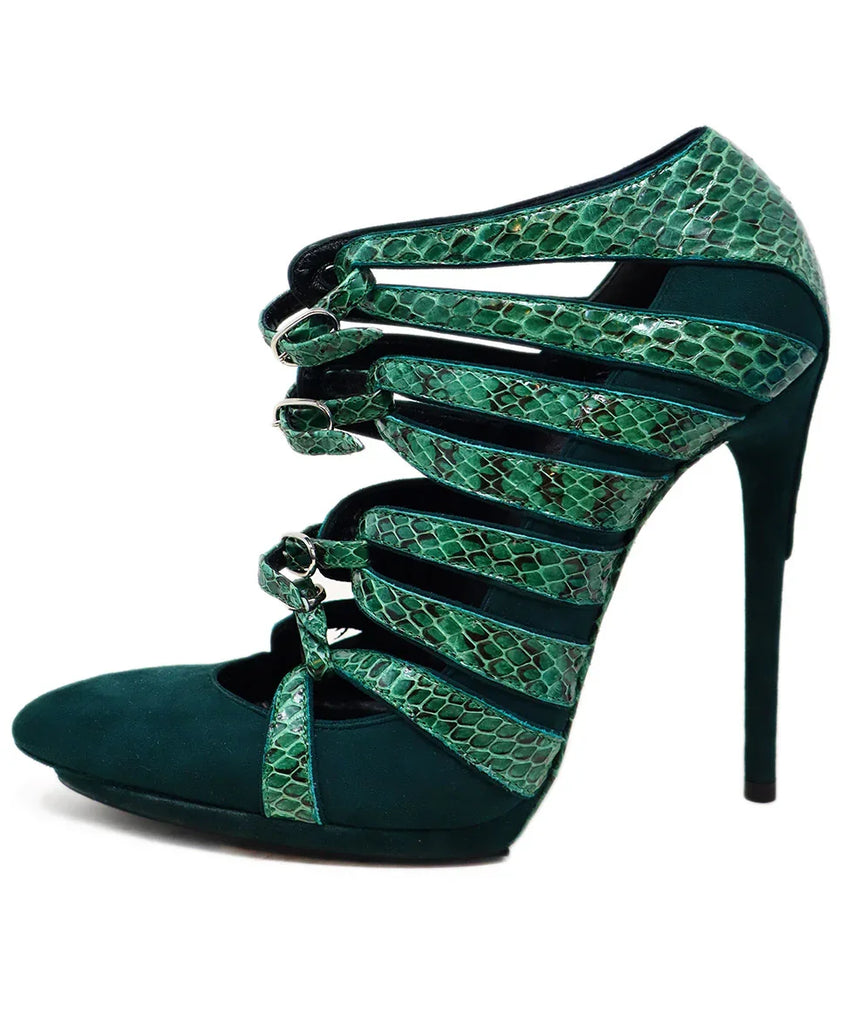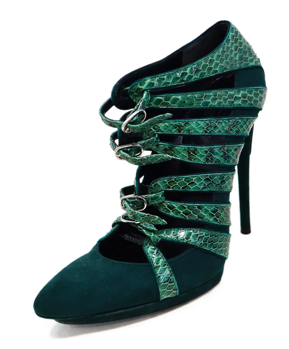 Balenciaga Green Snakeskin & Suede Heels sz 8
