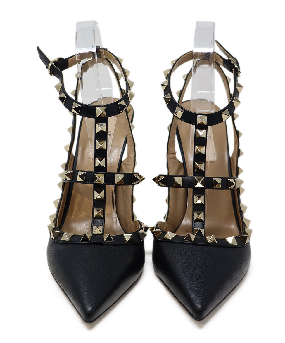 Valentino Black Leather & Gold Stud Heels sz 8.5