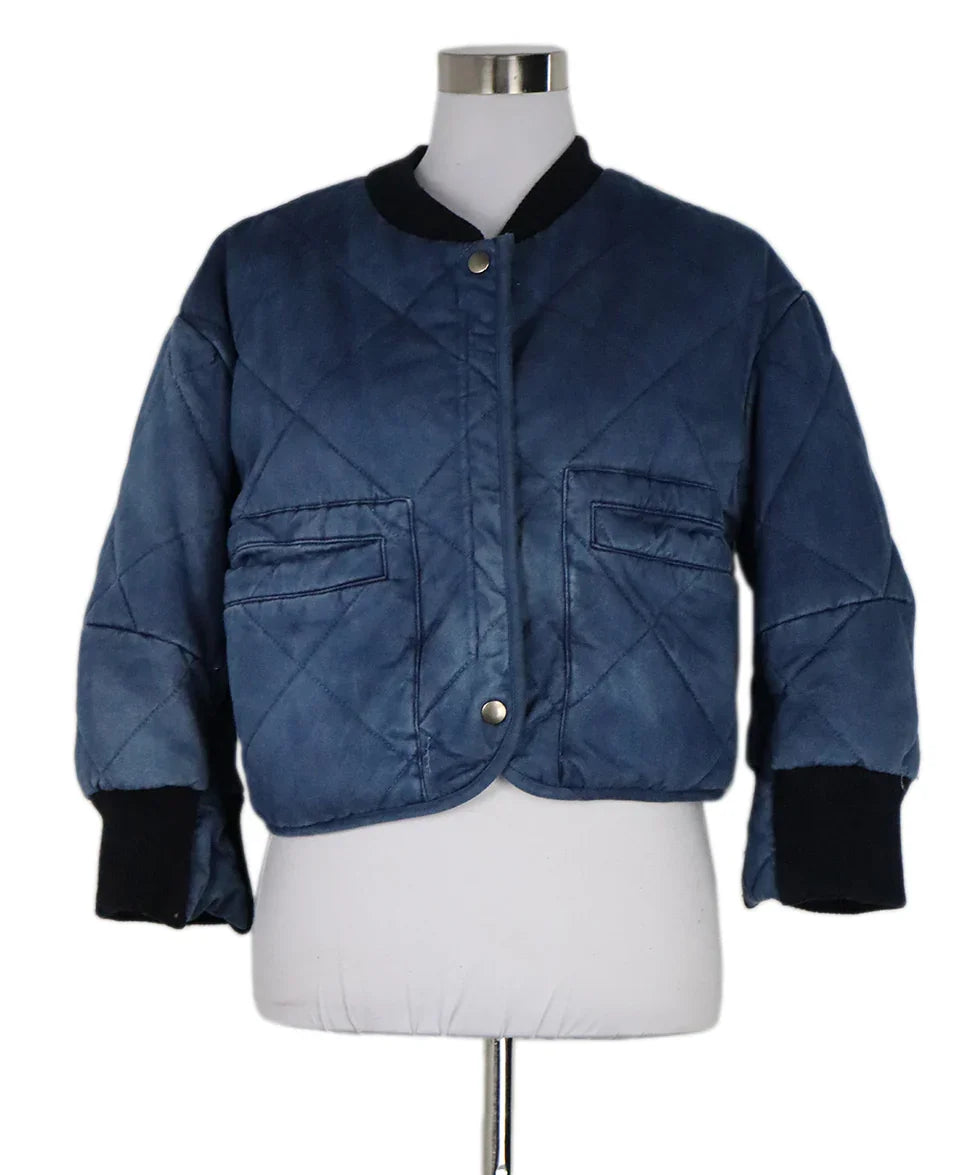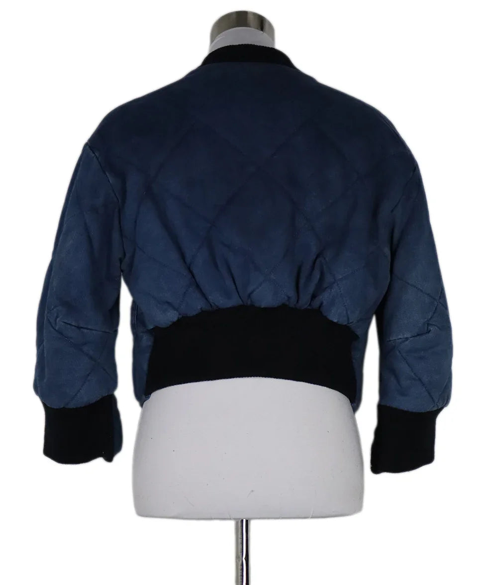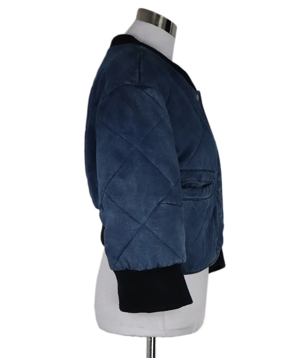 Rachel Comey Blue Quilted Bomber Jacket With Black Trim sz 2