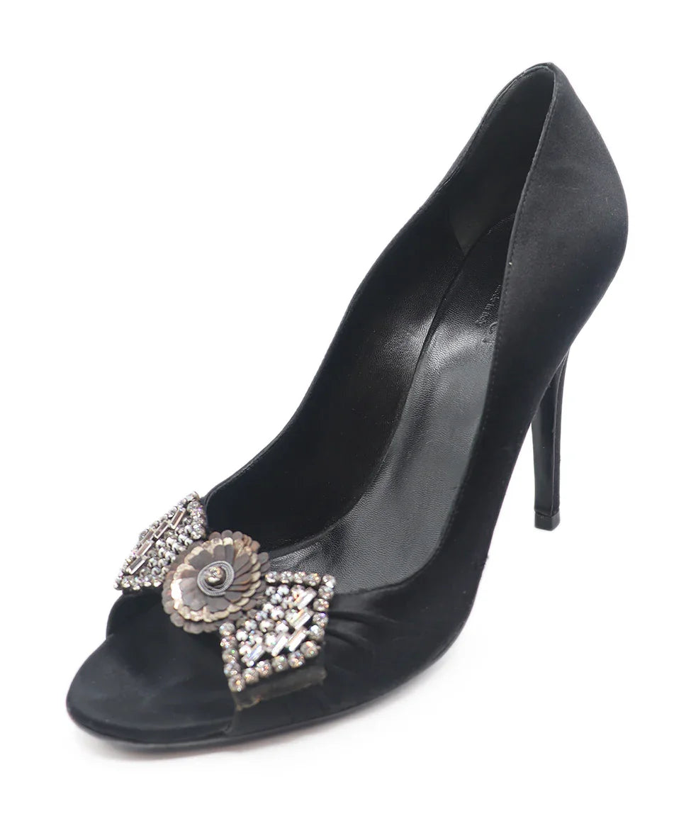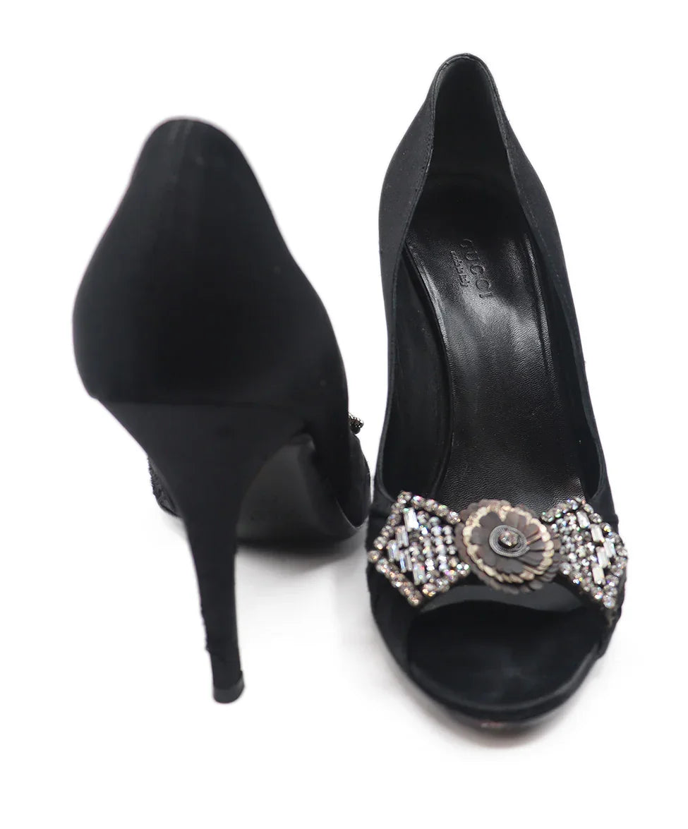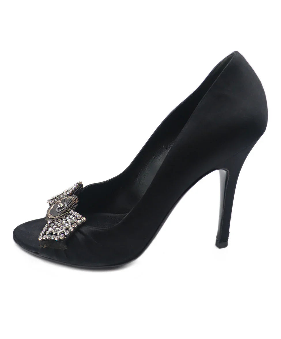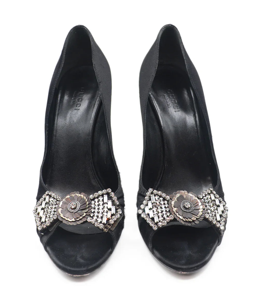 Gucci Black Satin Rhinestone Trim Heels Sz. 8