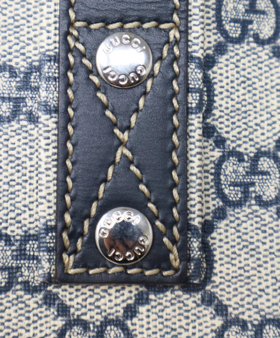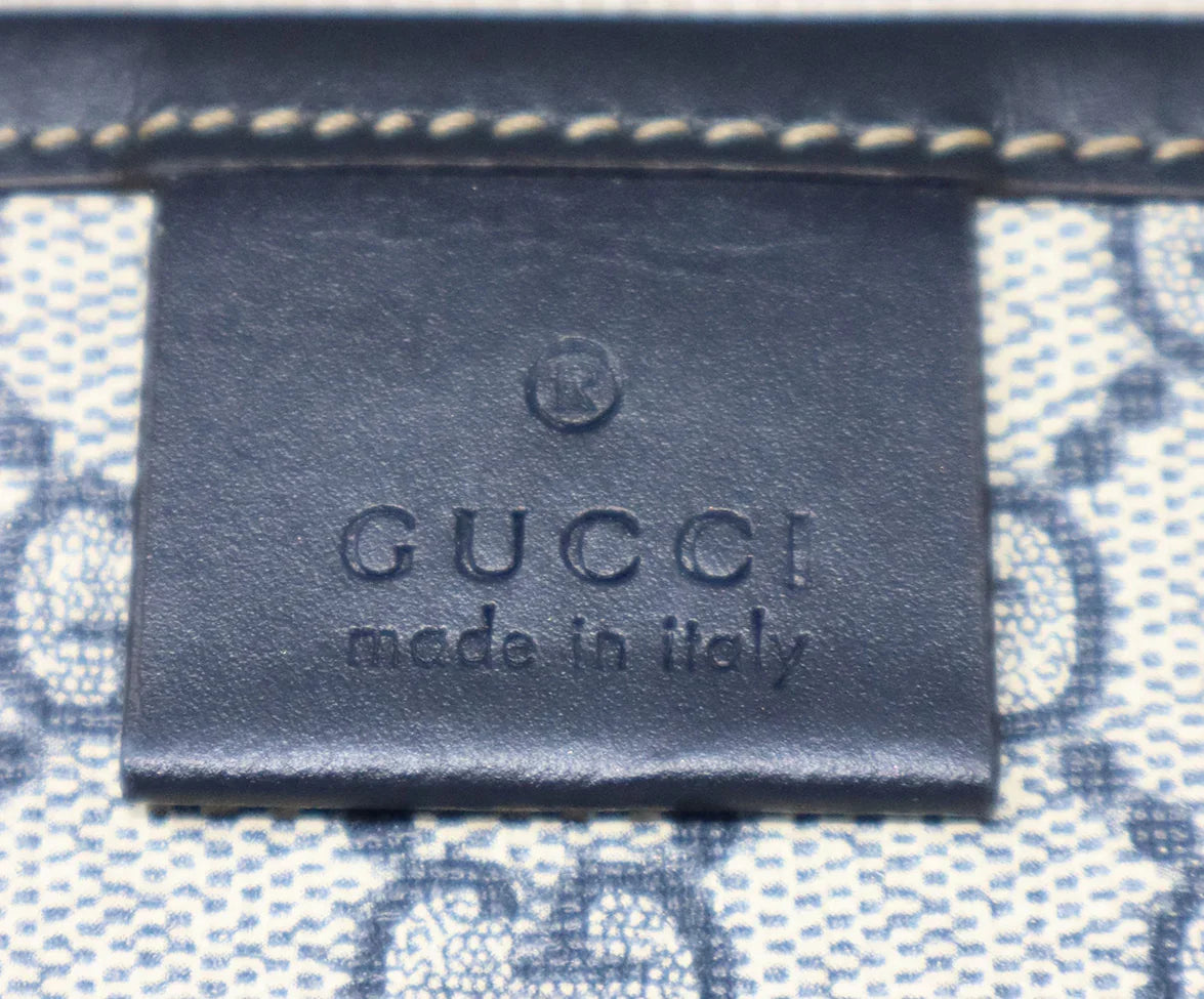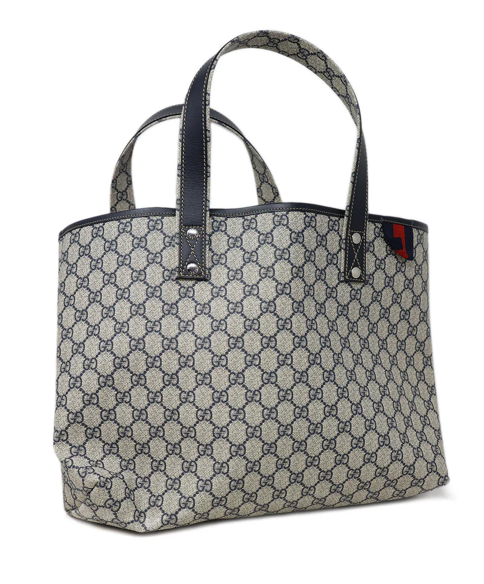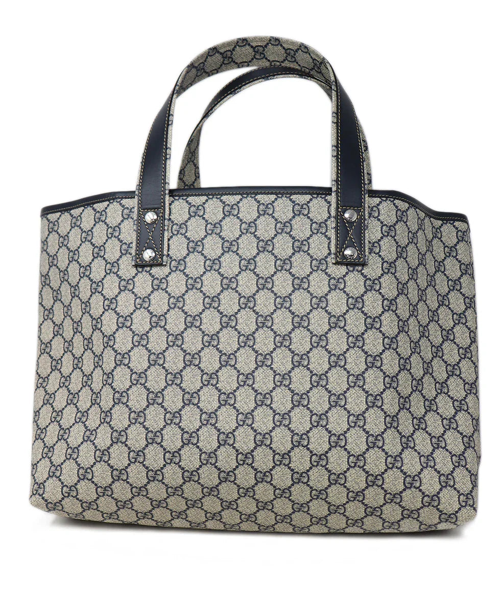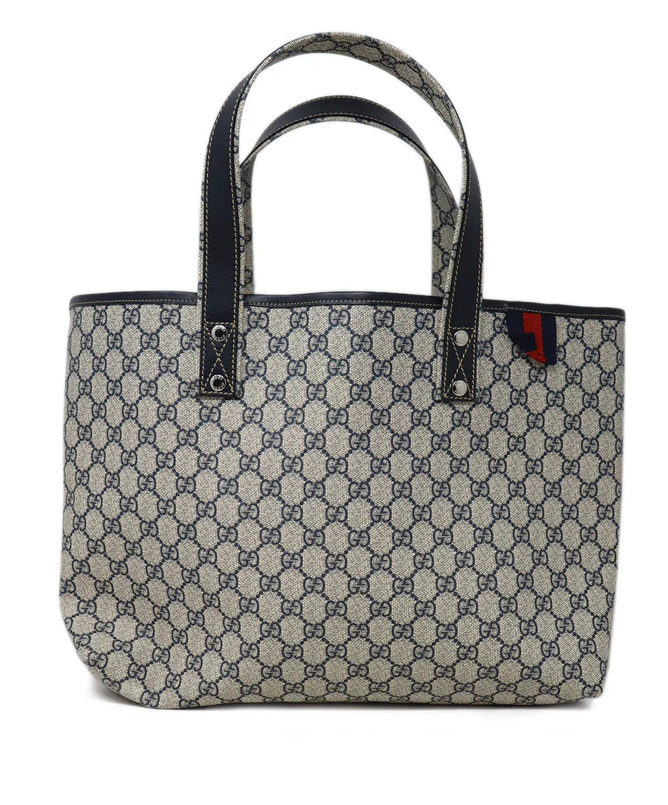 Gucci Blue Grey GG Monogram Canvas with Stripe Trim Tote