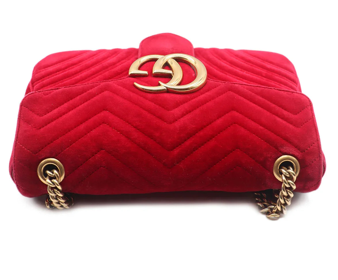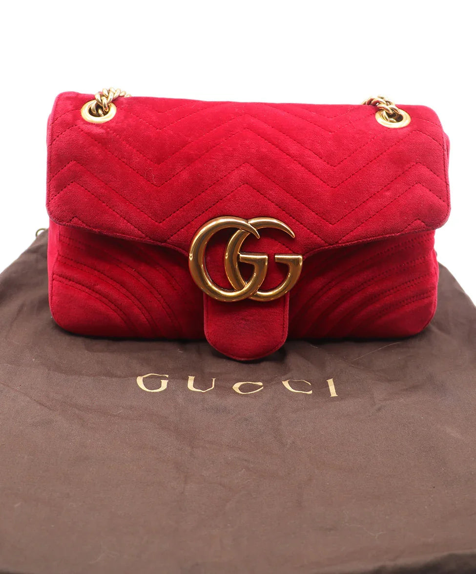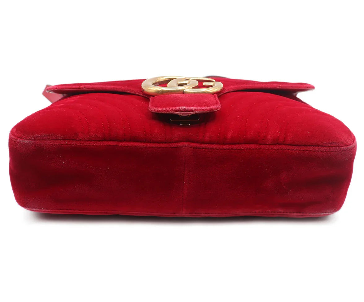 Gucci Red Velvet GG Marmont Flap Handbag