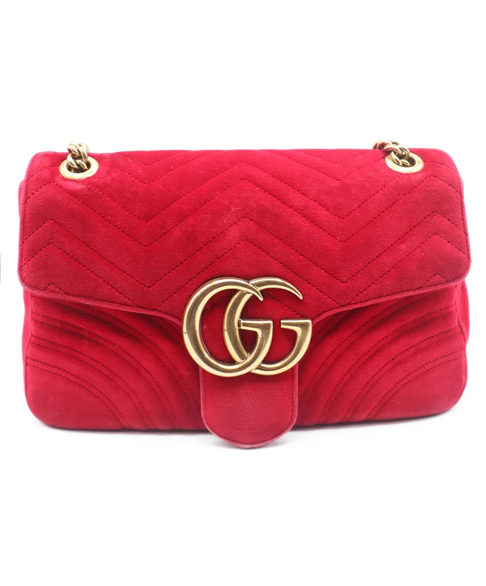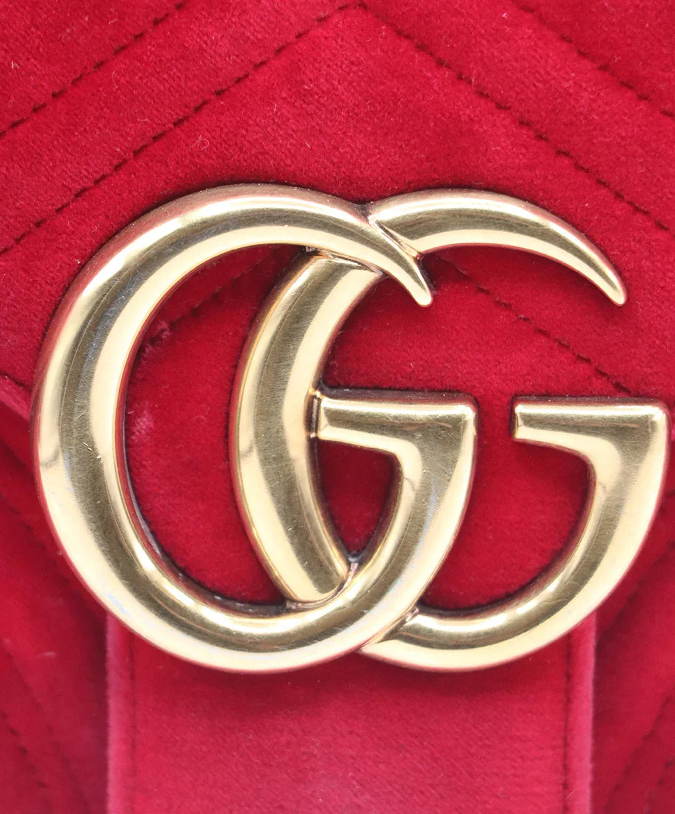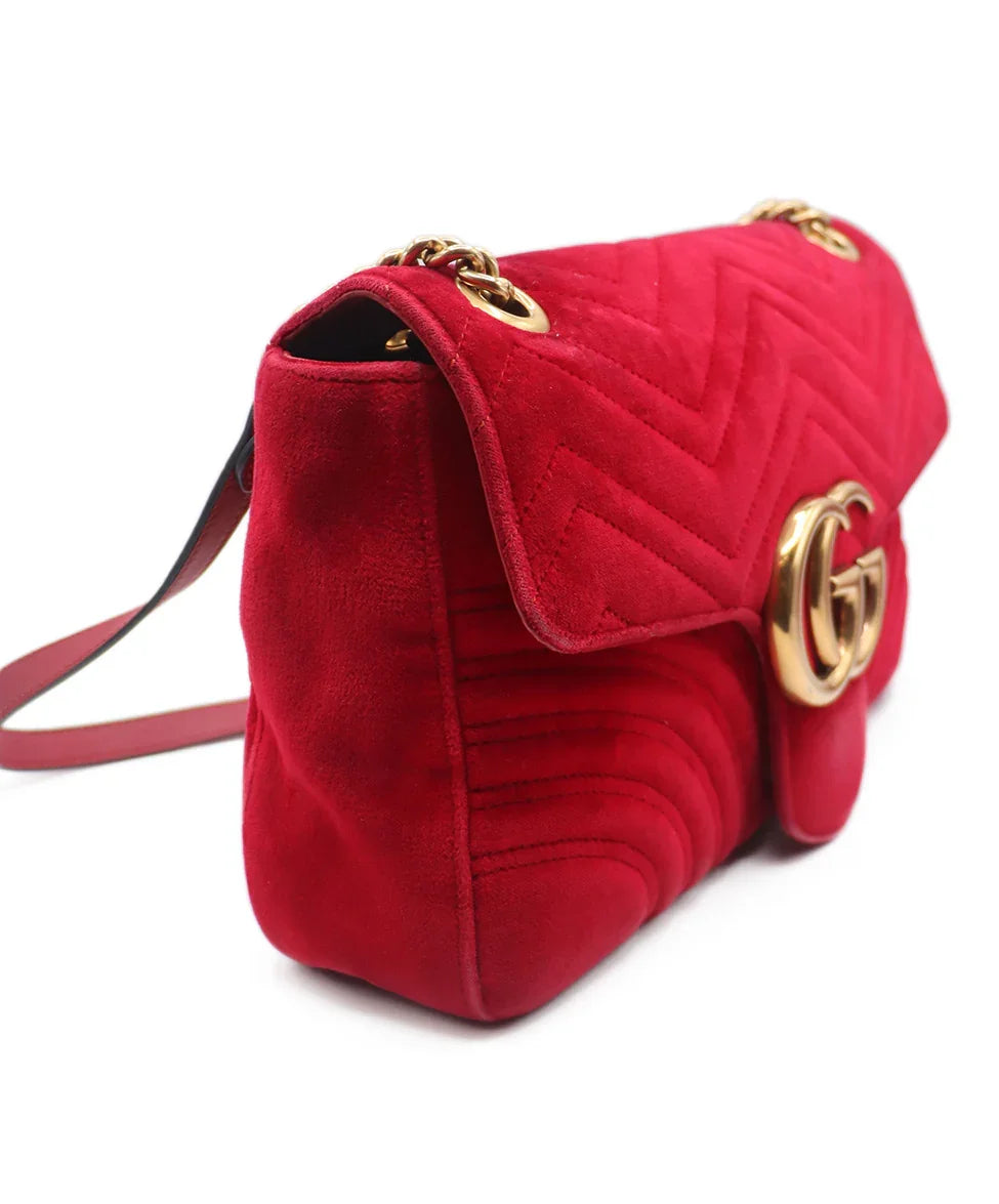 Gucci Red Velvet GG Marmont Flap Handbag
