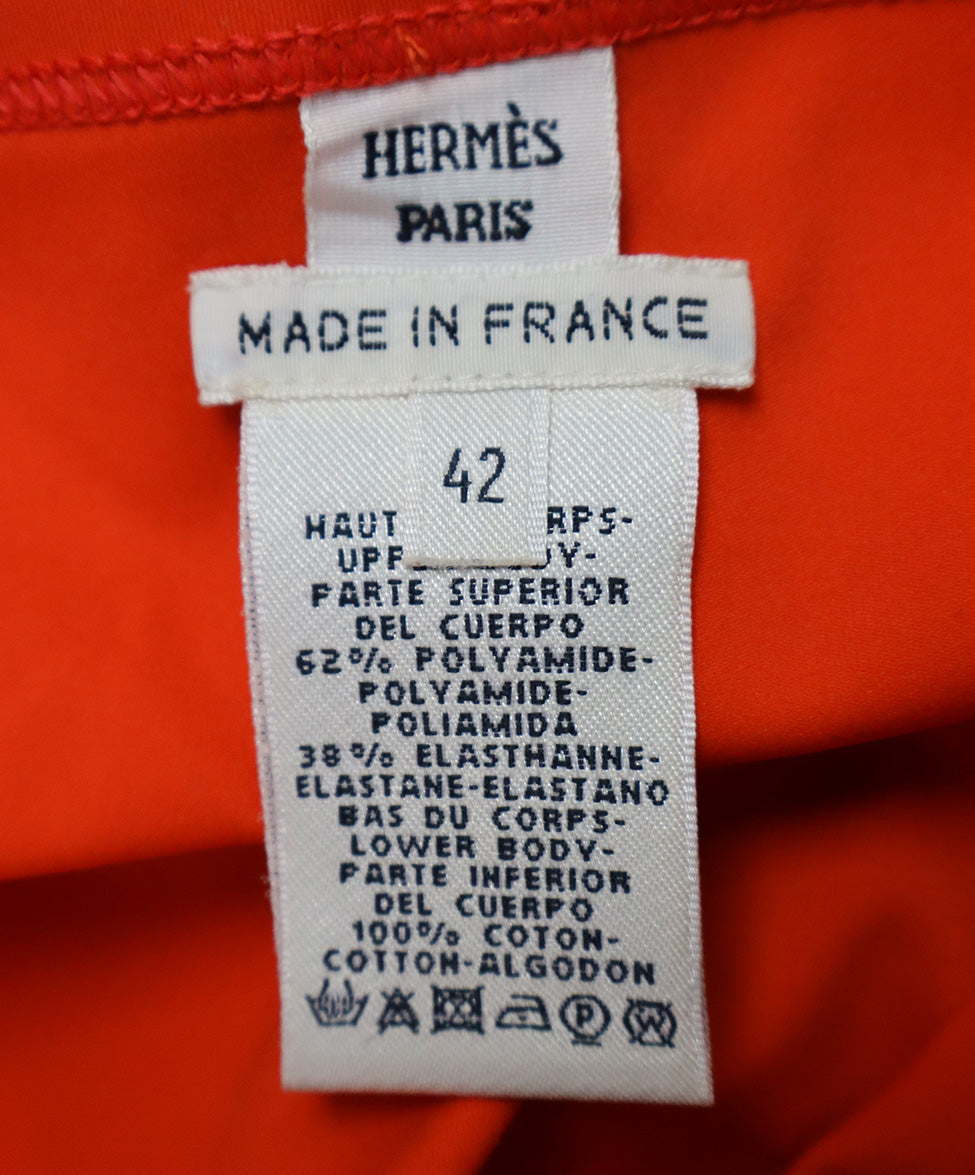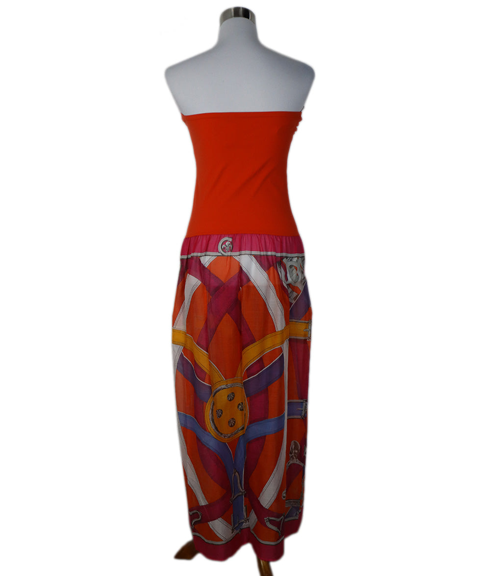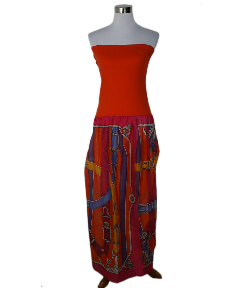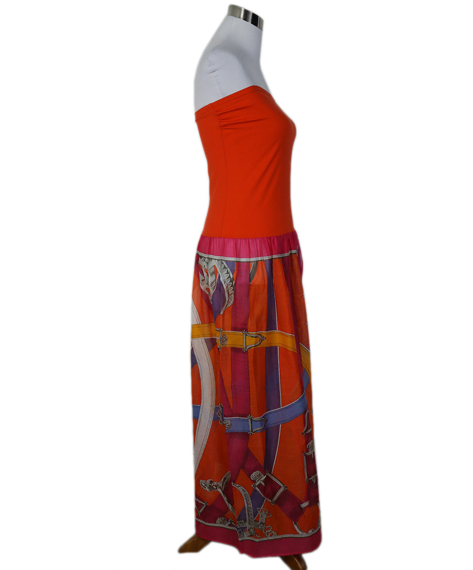 Hermes Orange, Fuschia Cotton Strapless Dress sz 10
