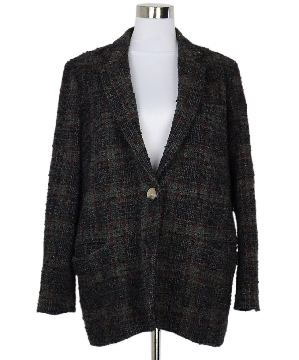 Isabel Marant Green Red & Grey Plaid Wool Blazer sz 4