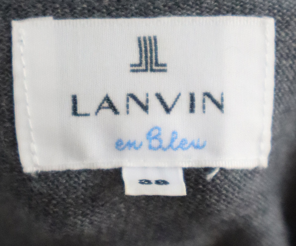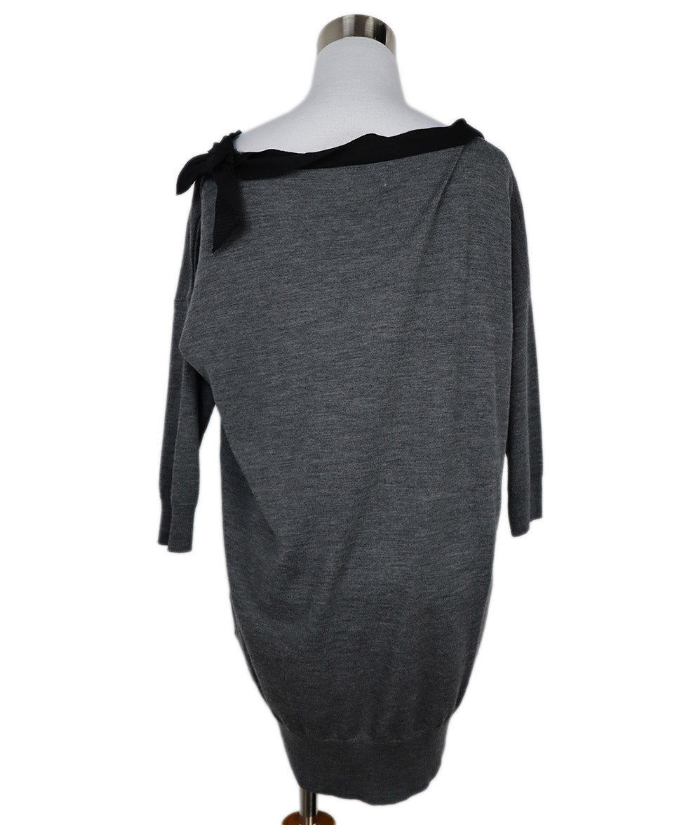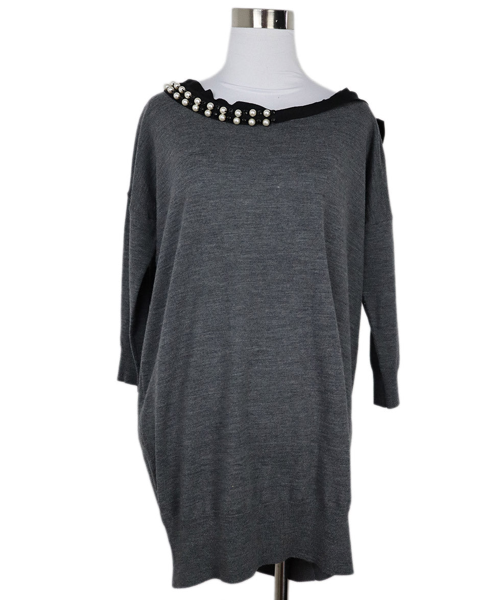 Lanvin Grey Wool & Black Faille Beaded Sweater sz 6