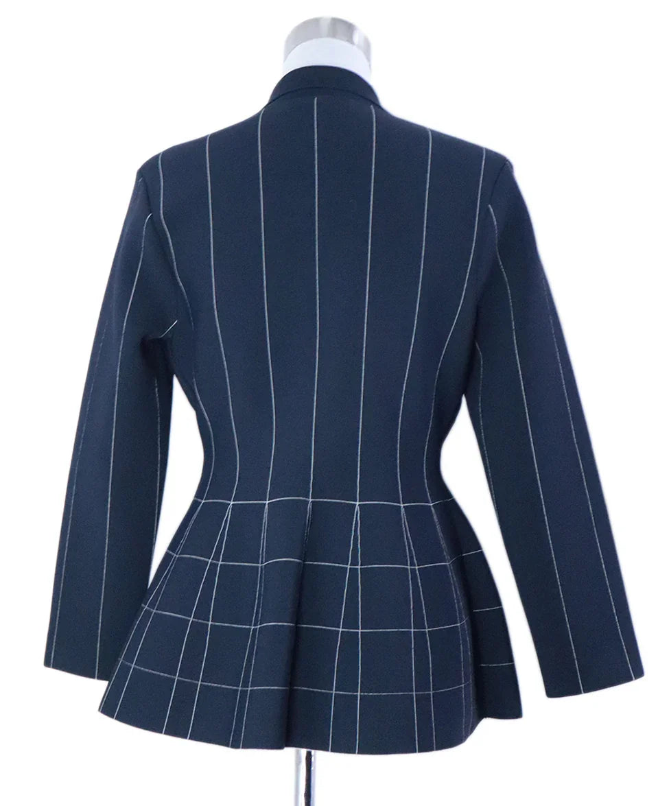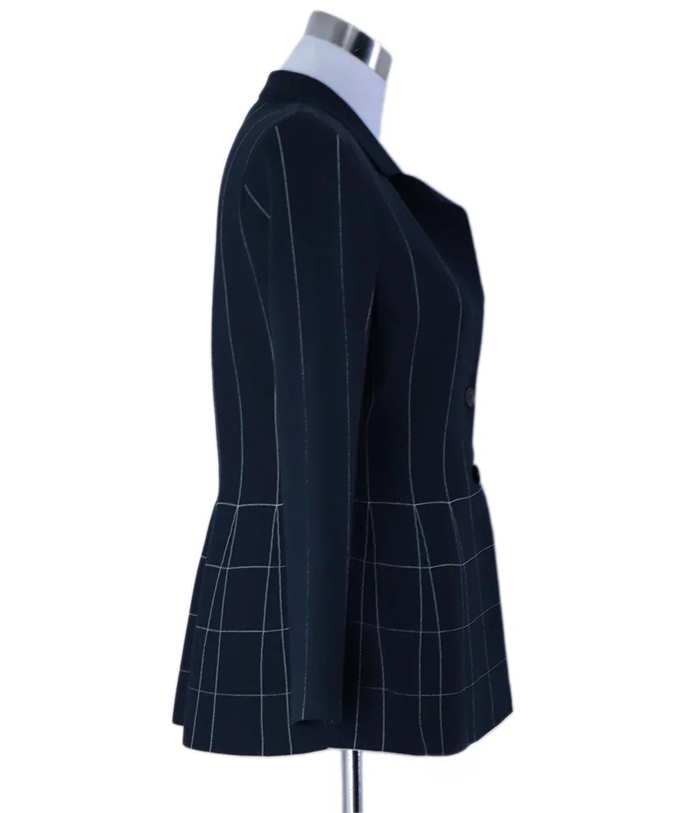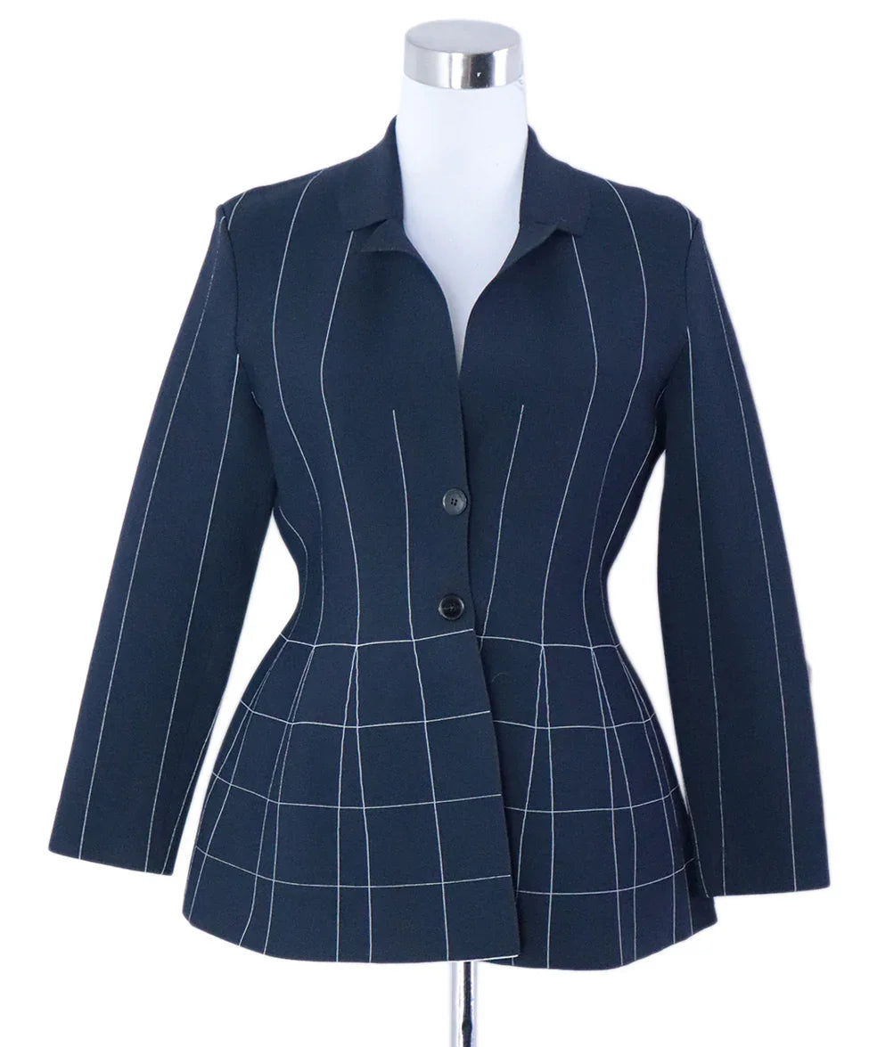 Ferragamo Navy Blue White Plaid and Pin Stripe Viscose Polyester Jacket sz 6