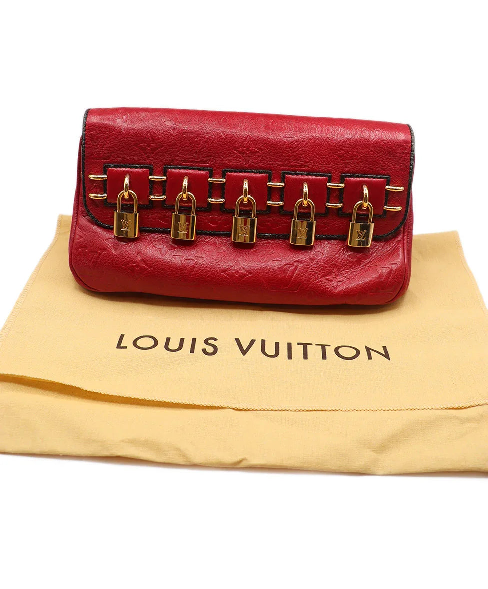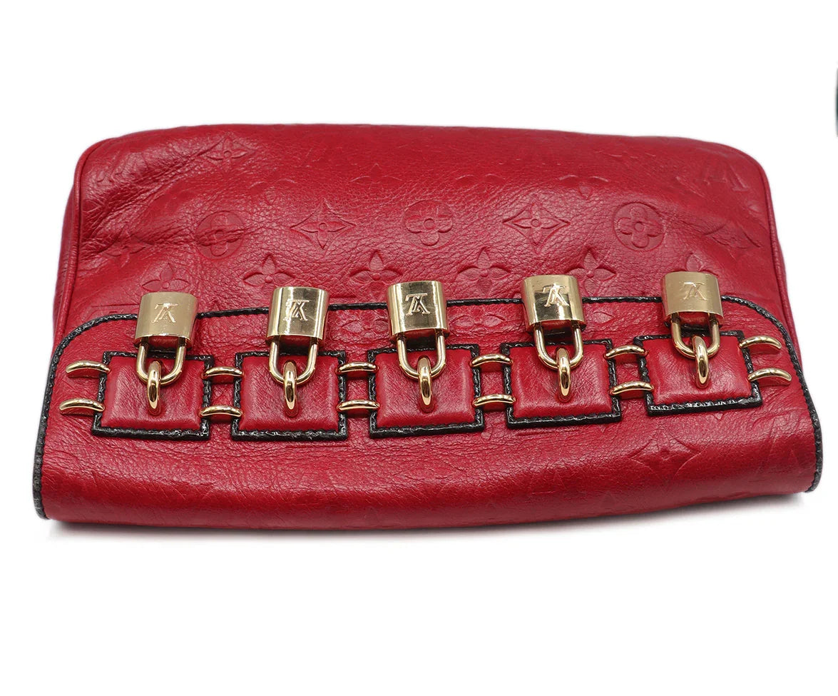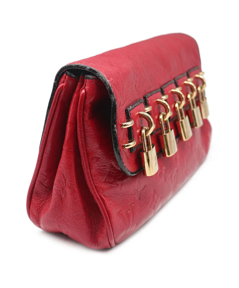 Louis Vuitton Red Leather Gold Lock Trim Clutch