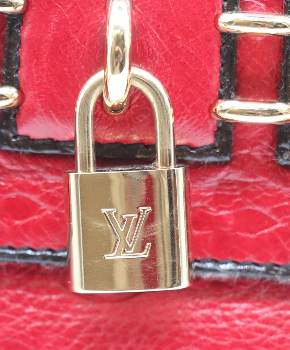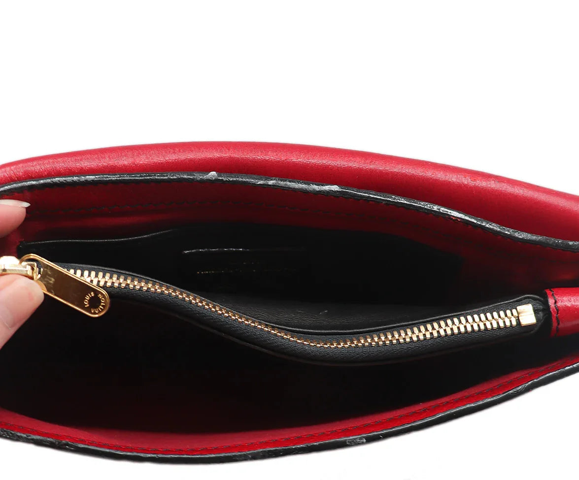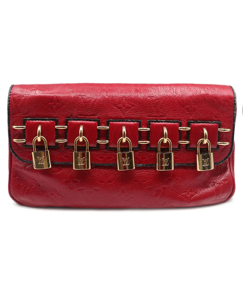 Louis Vuitton Red Leather Gold Lock Trim Clutch
