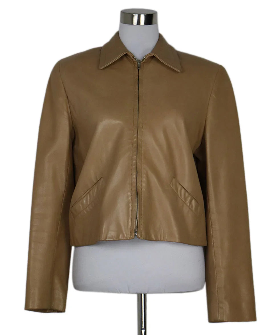 Ralph Lauren Vintage Beige Leather Jacket sz 8