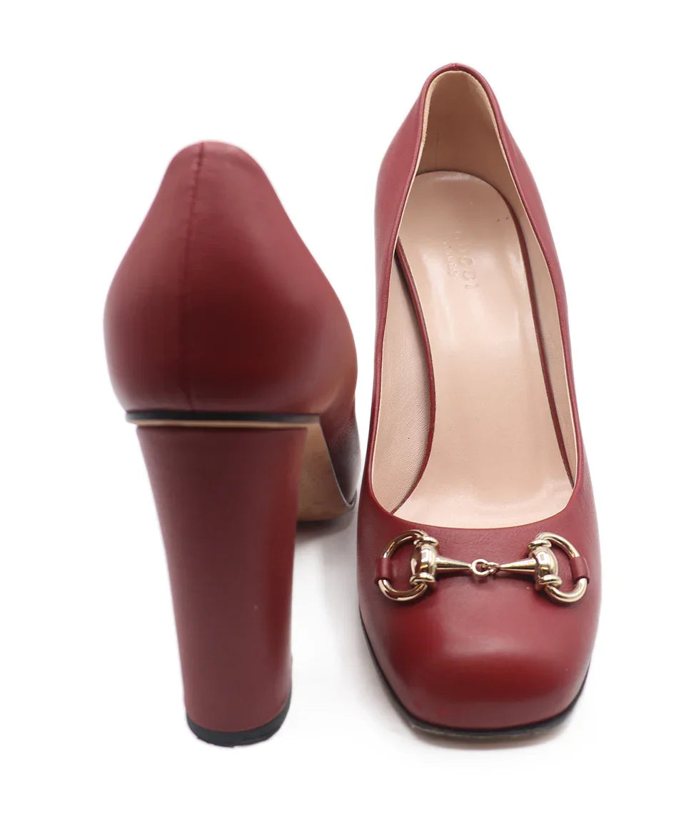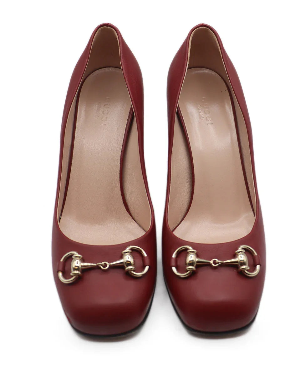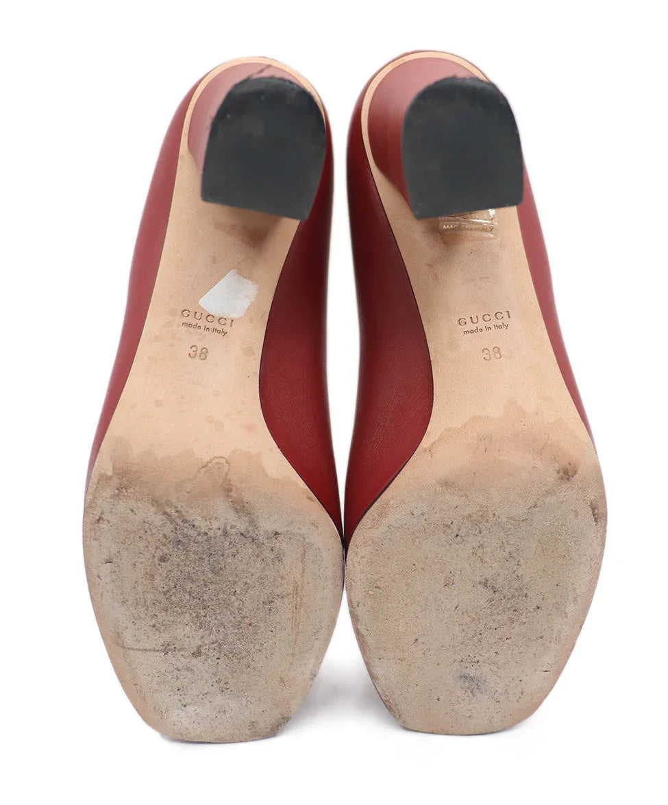 Gucci Red Leather Gold Horsebit Shoes Sz. 8