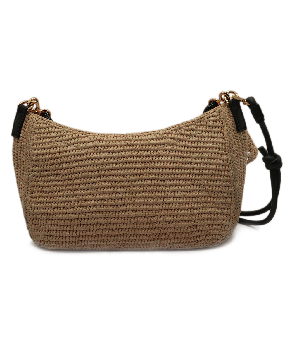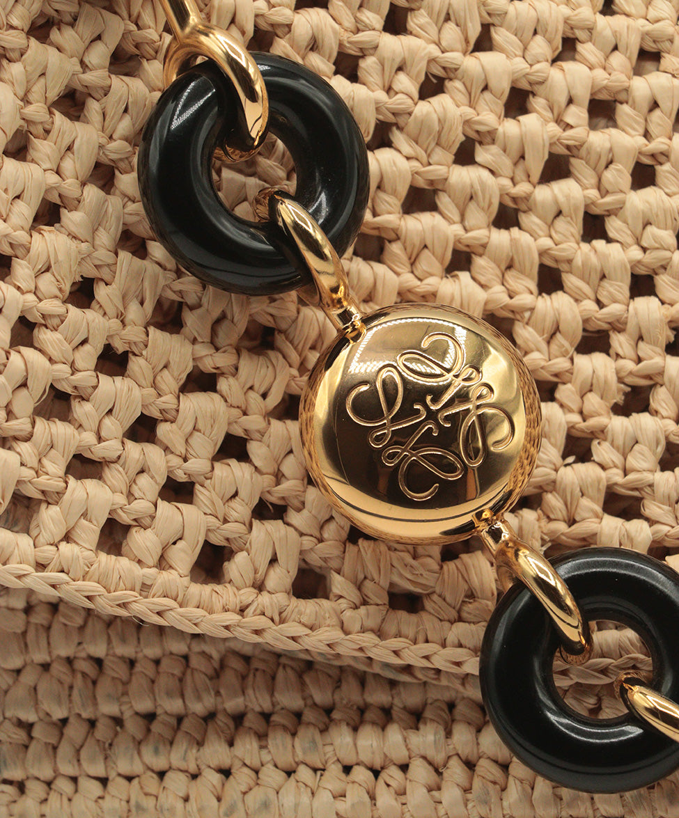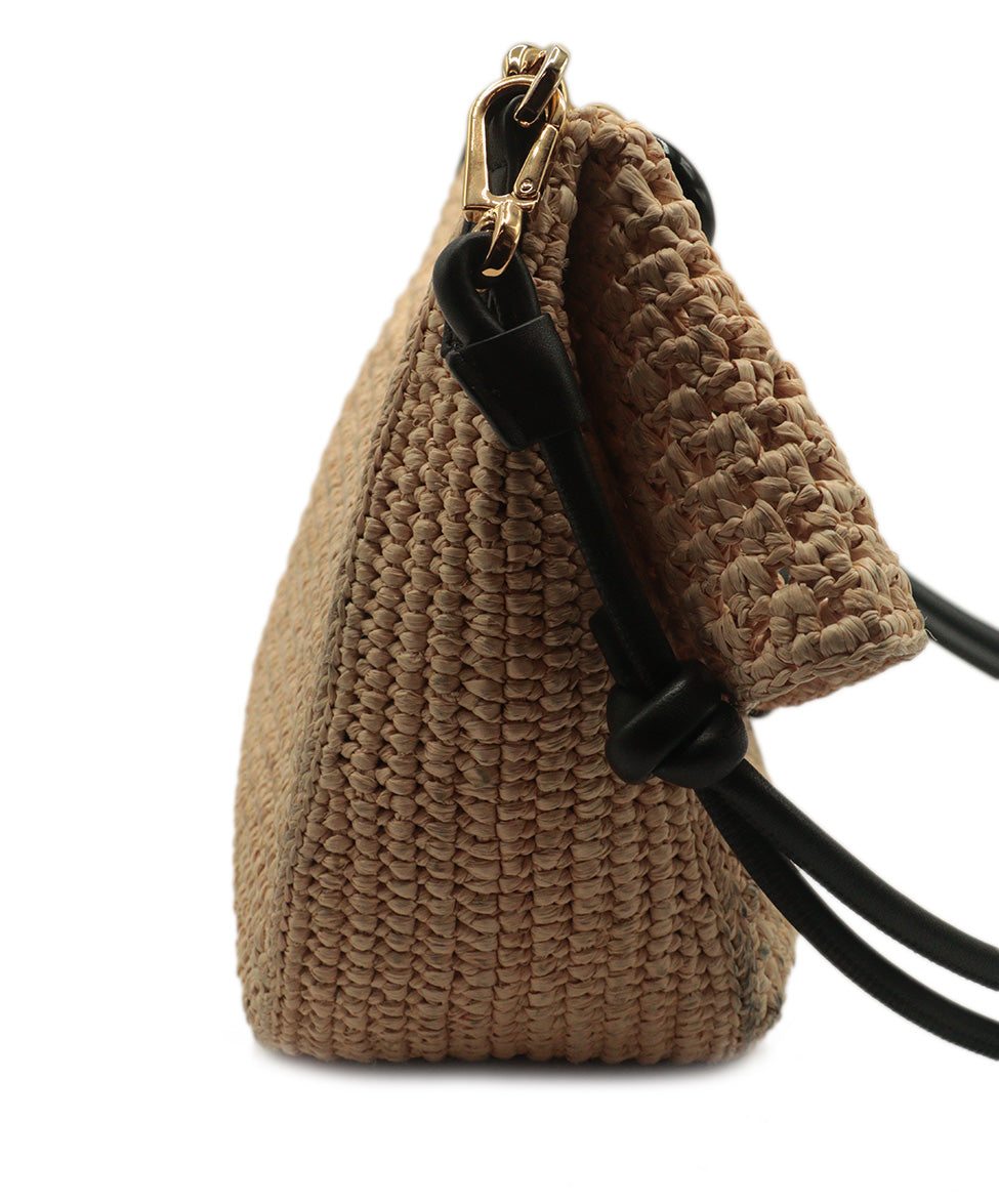 Loewe Tan Straw & Black Shoulder Bag