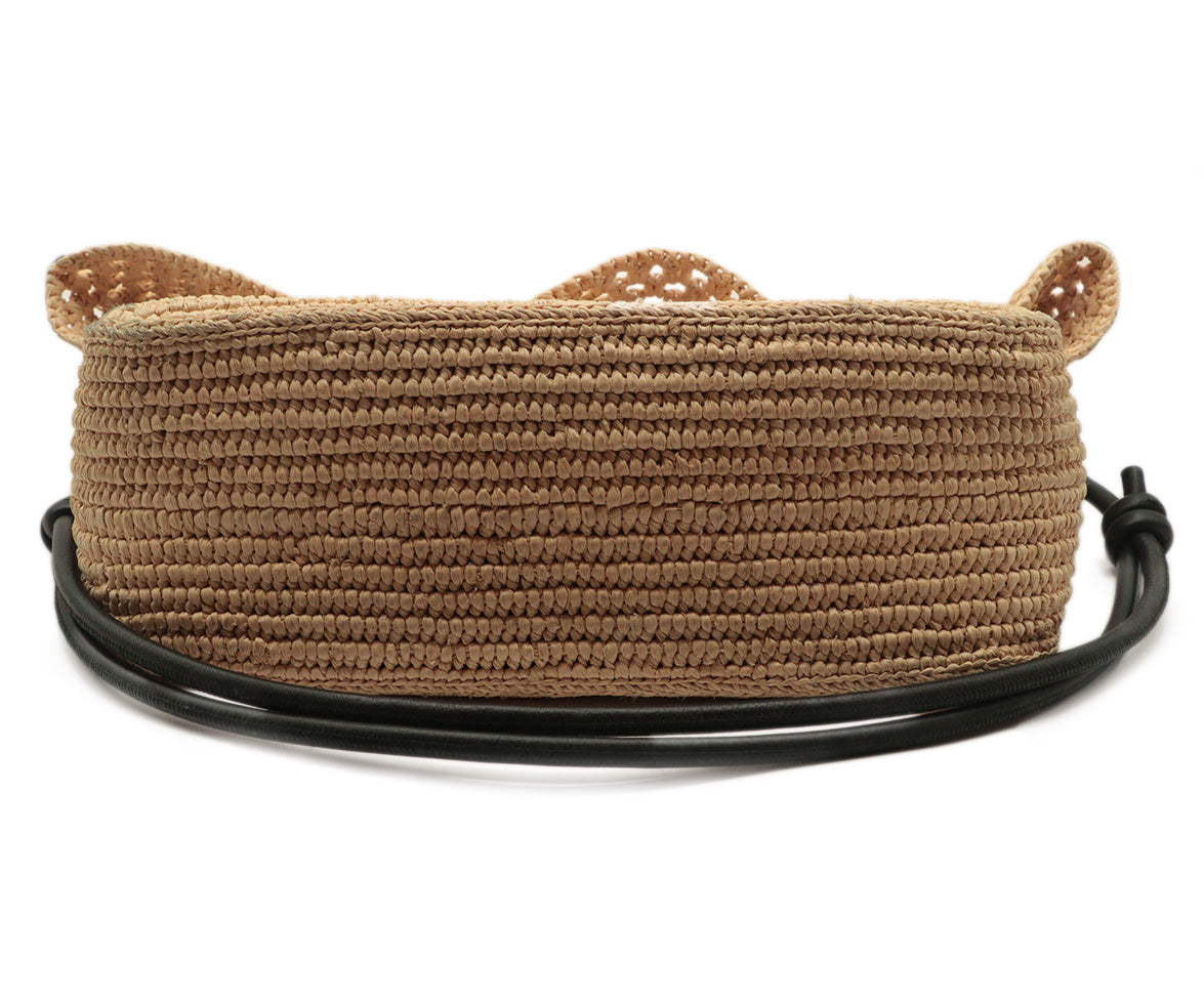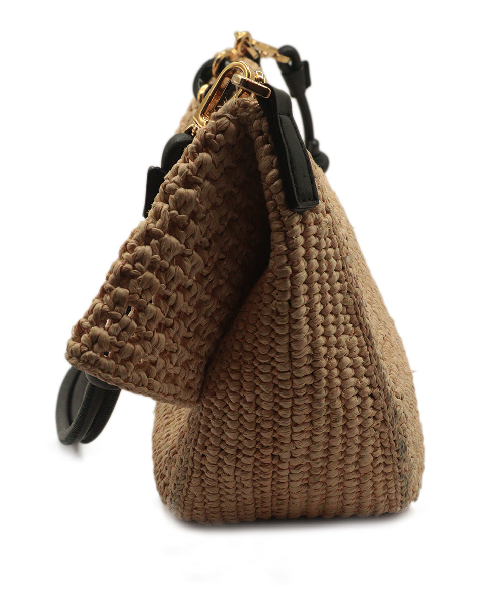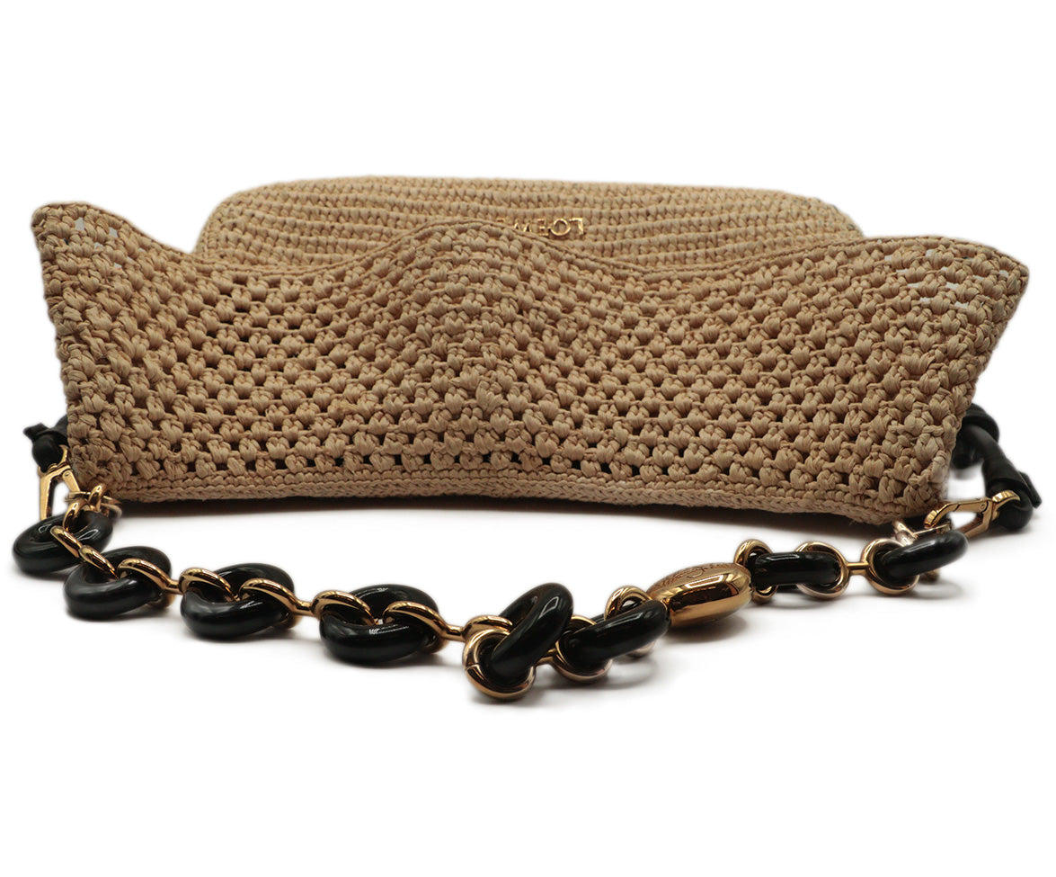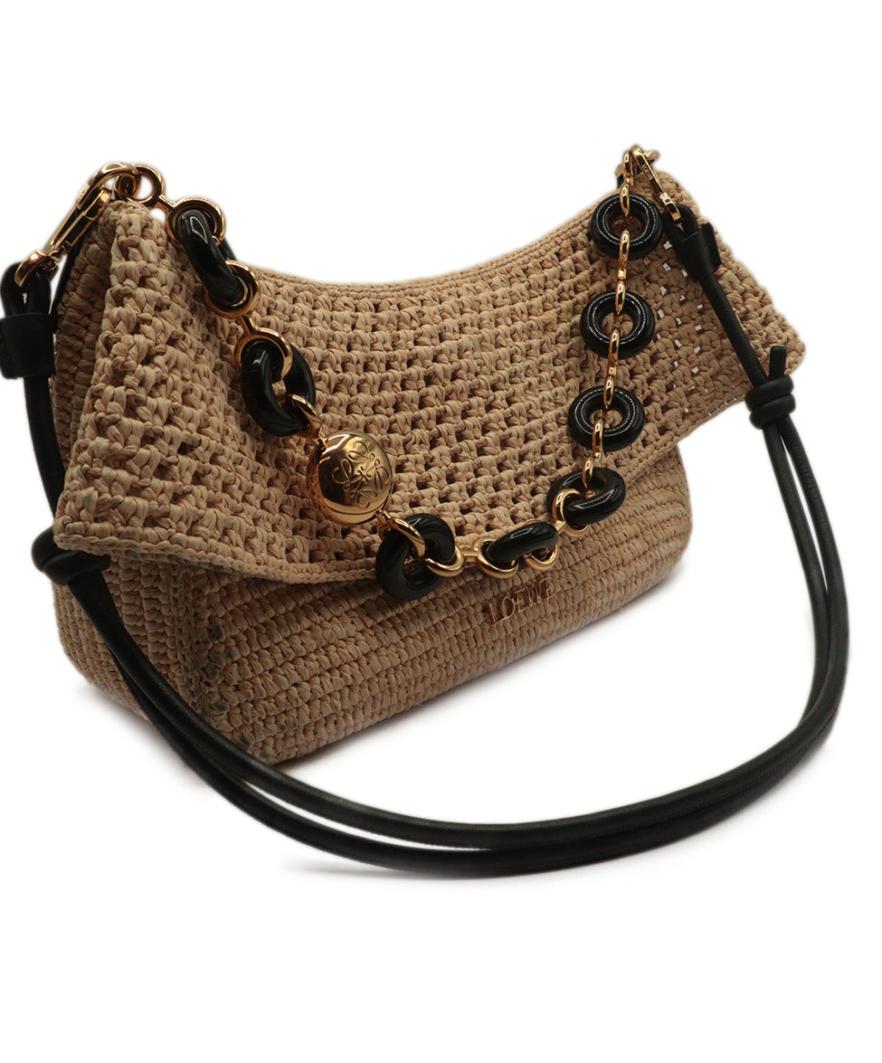 Loewe Tan Straw & Black Shoulder Bag