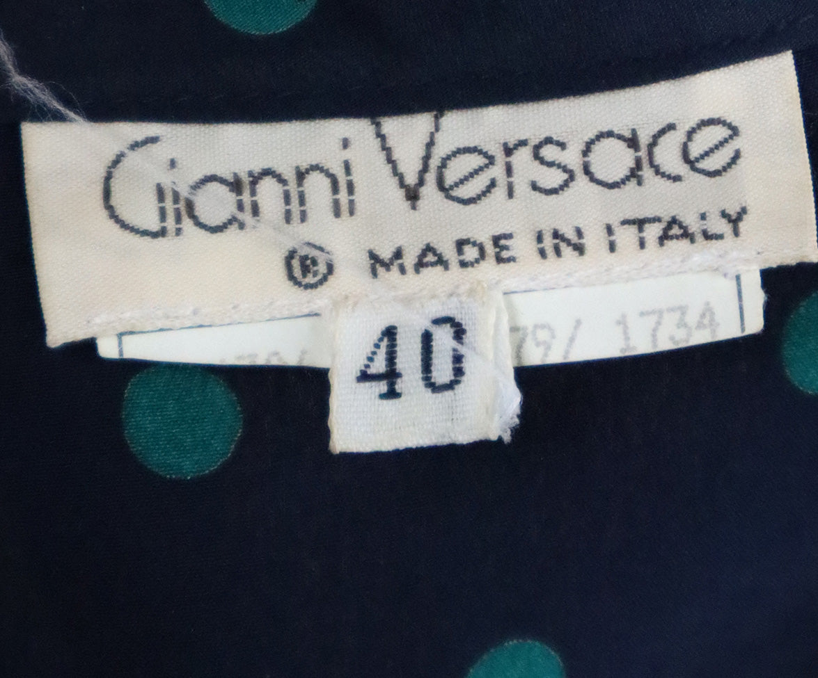Versace Vintage Navy & Green Polka Dot Silk Blouse sz 4