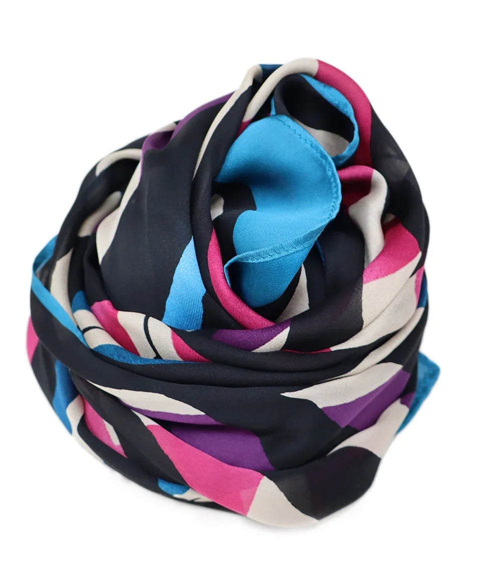 Chanel Black Pink & Teal Print Silk Scarf