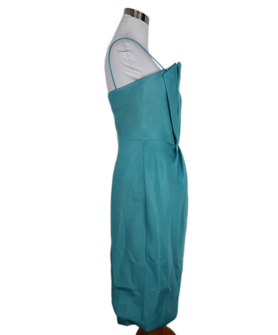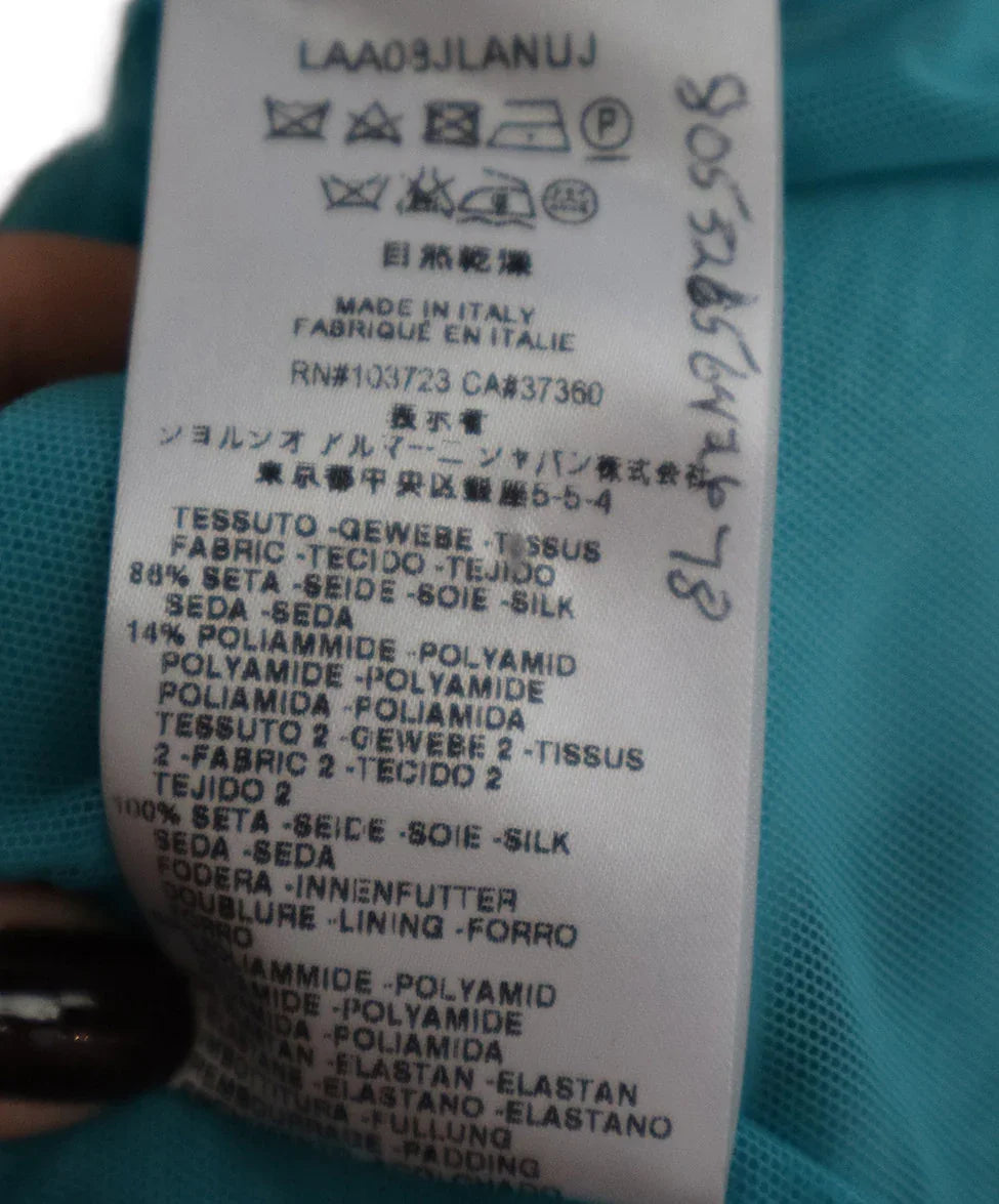 This Giorgio Armani teal silk dress in size 4 offers classic elegance for evening occasions. Its simple yet refined design and luxurious fabric provide a timeless look perfect for sophisticated parties.