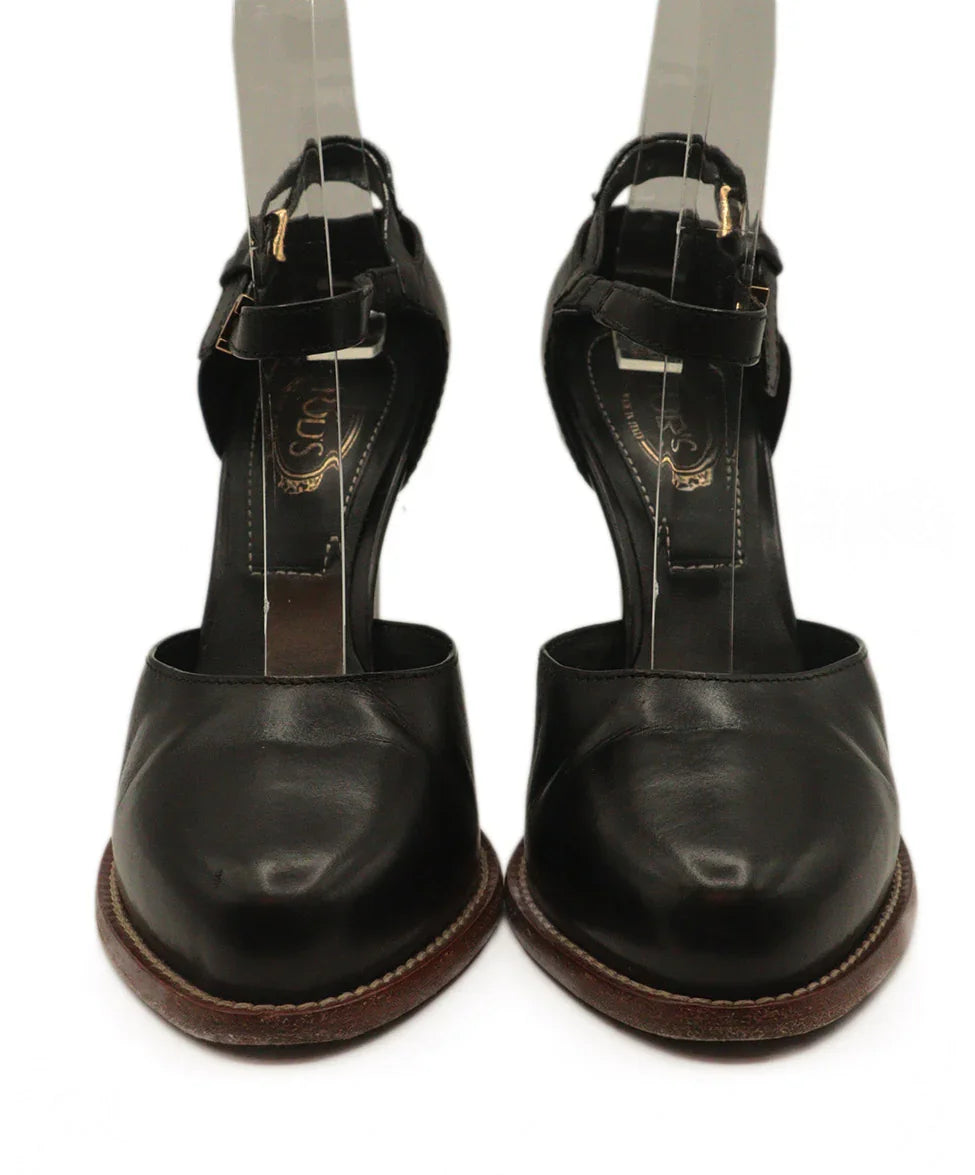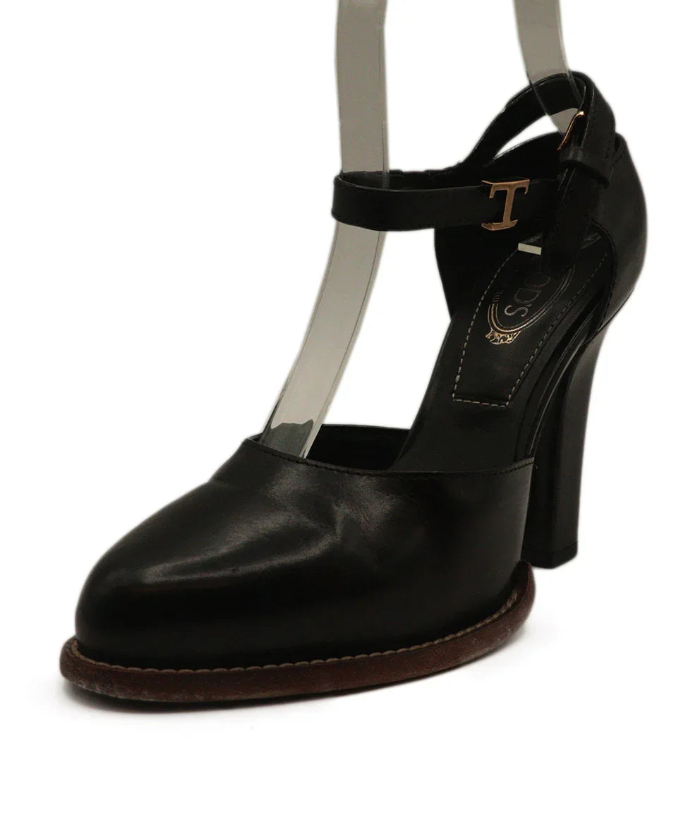 Tod's Black Leather Ankle Strap Heels sz 4.5