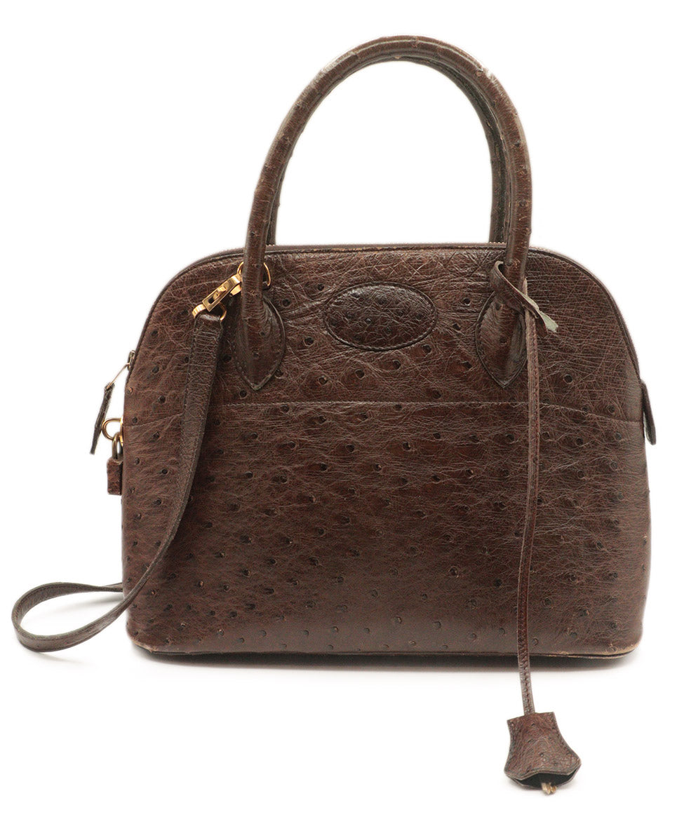 Hermes Vintage Brown Ostrich Skin Satchel
