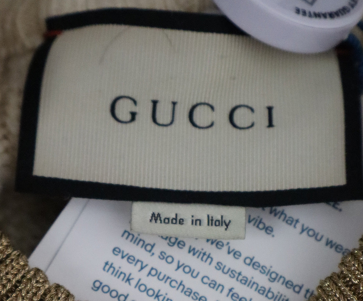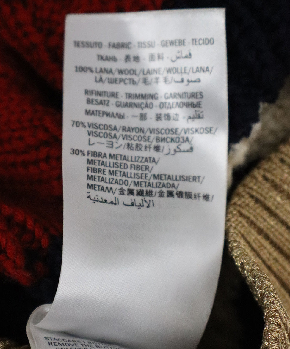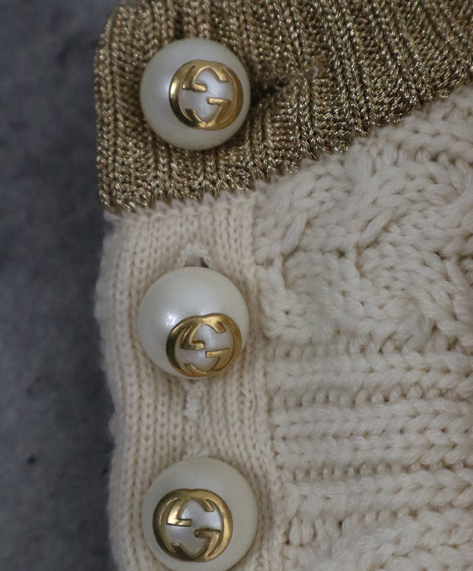 Gucci Crewneck Red Ivory Navy Striped Cableknit Wool Sweater with Gold Pearl Buttons sz 2