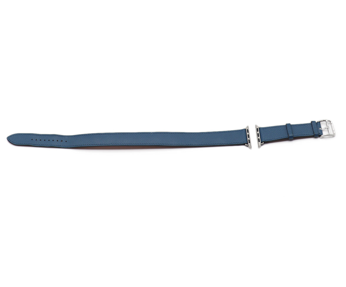 Elegant Hermes watch strap in stunning blue leather. Perfect for everyday use in size 38 mm.
