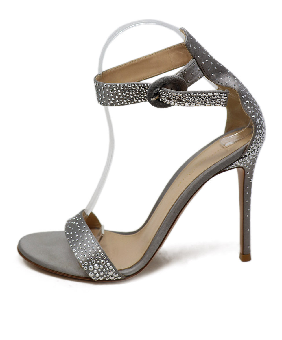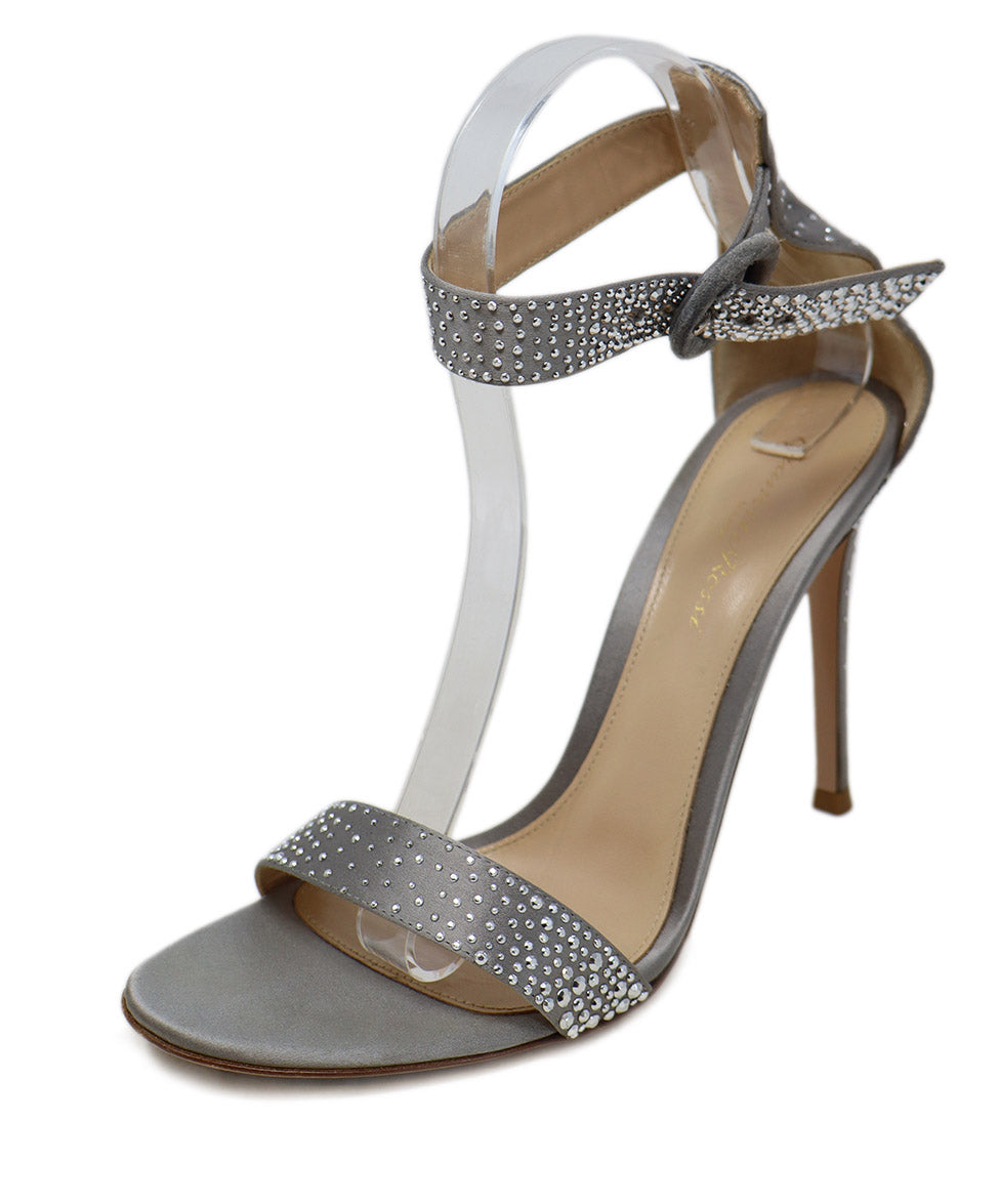 Gianvito Rossi Grey Satin Studded Heels sz 8.5