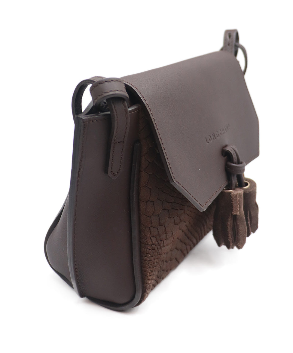 Longchamp Brown Leather Crocodile Print Handbag