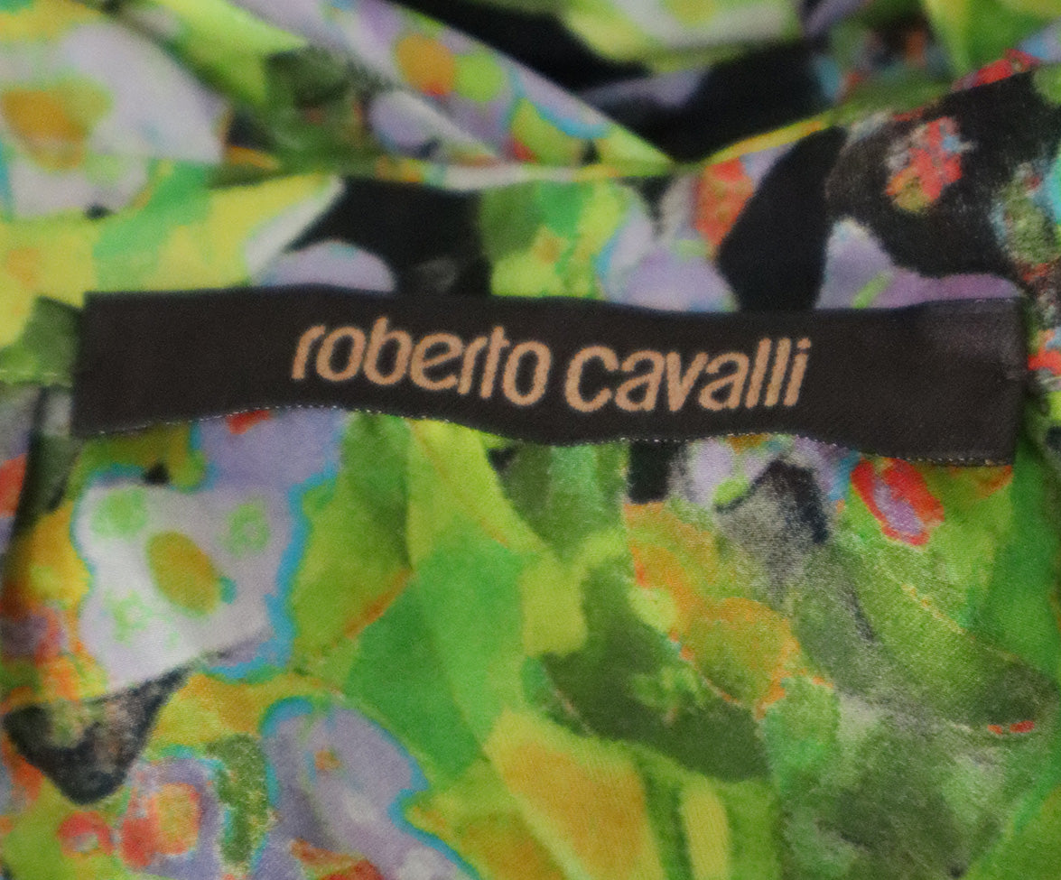 Roberto Cavalli Green Lavender Print Silk Blouse sz 2
