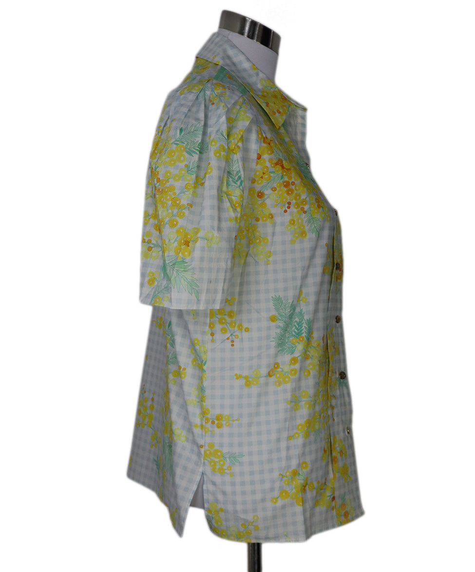Leonard White Yellow Floral Blue Check Cotton Shirt sz 6