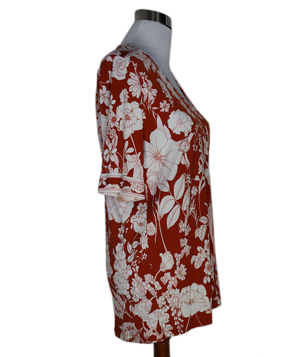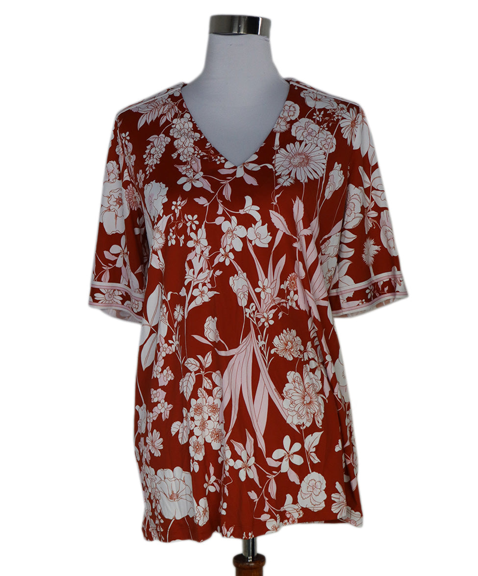Leonard White Rust Floral Polyamide Blouse sz 4