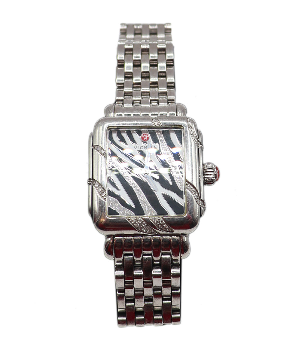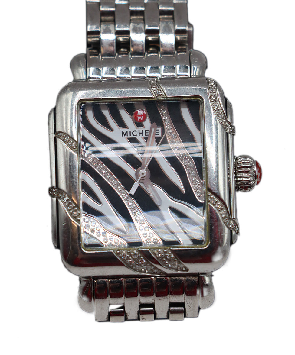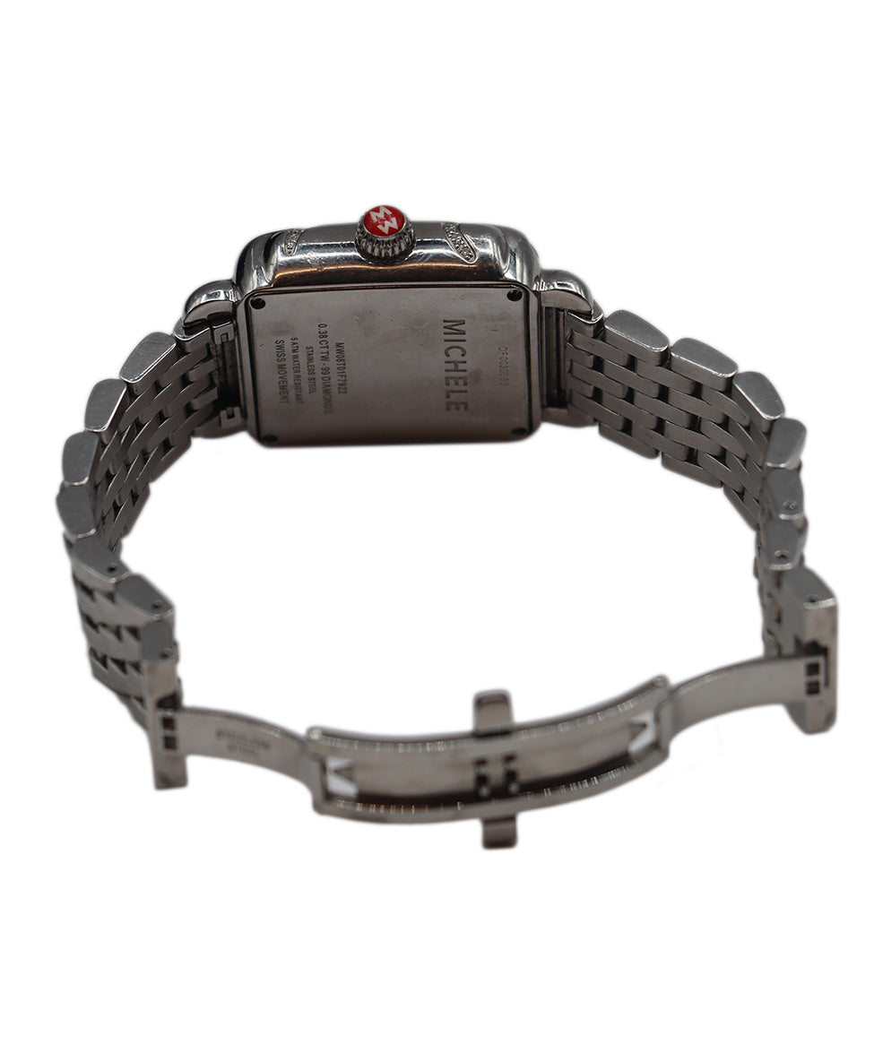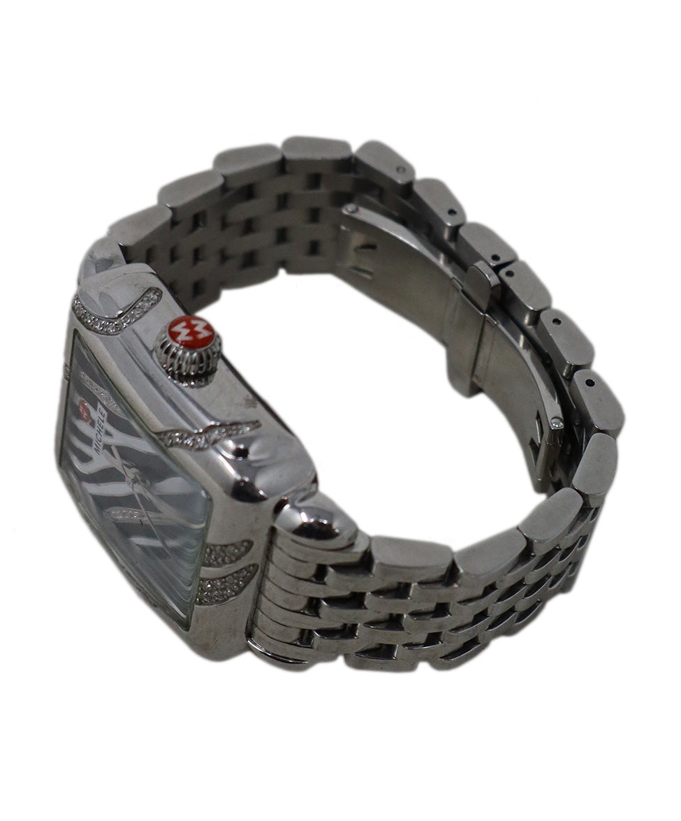 Michele Metallic Silver Stainless Steel Diamond Watch
