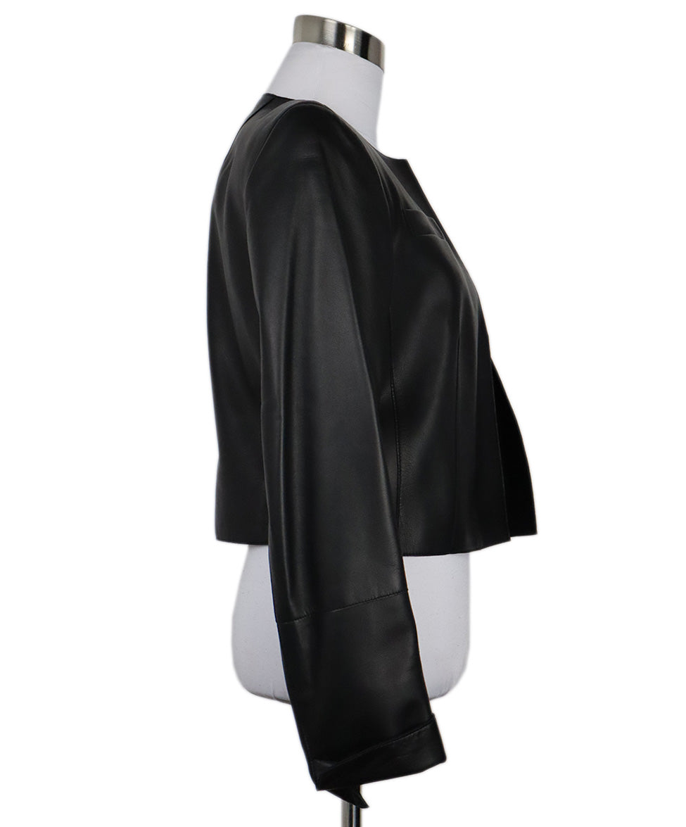 Akris Cropped Black Leather Jacket sz 8