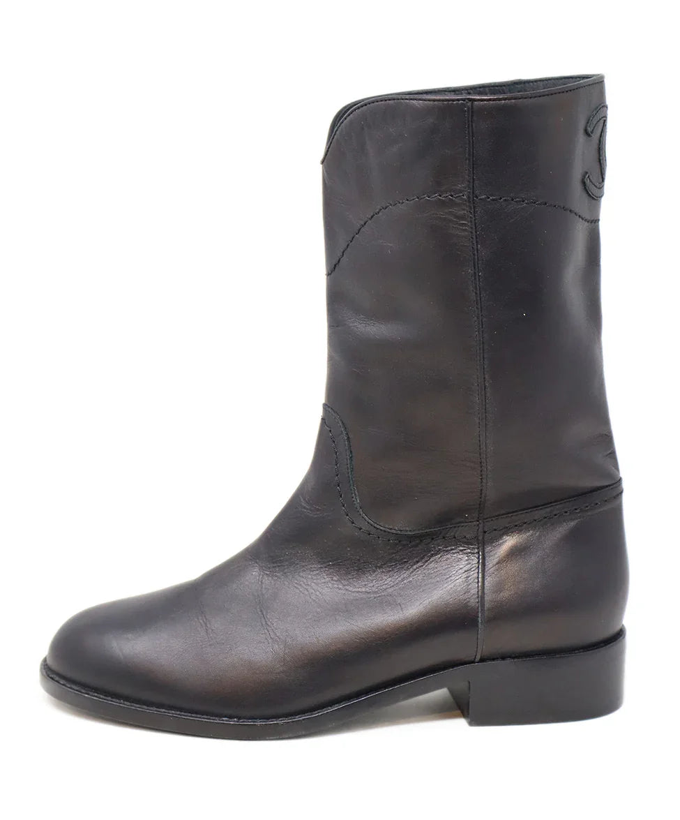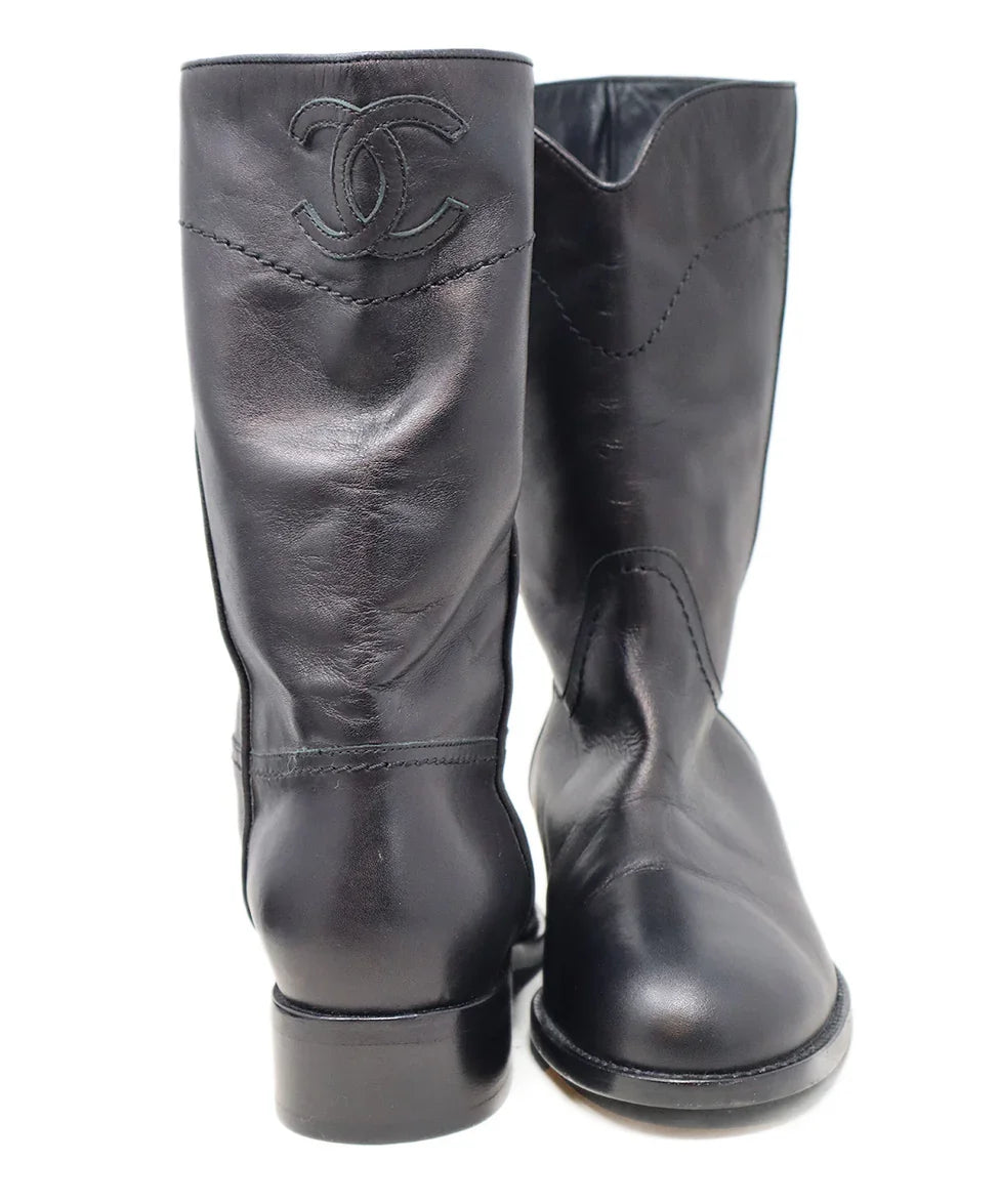 Chanel Black Leather Booties with Dust Bag sz 8.5