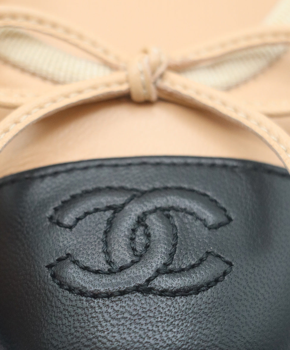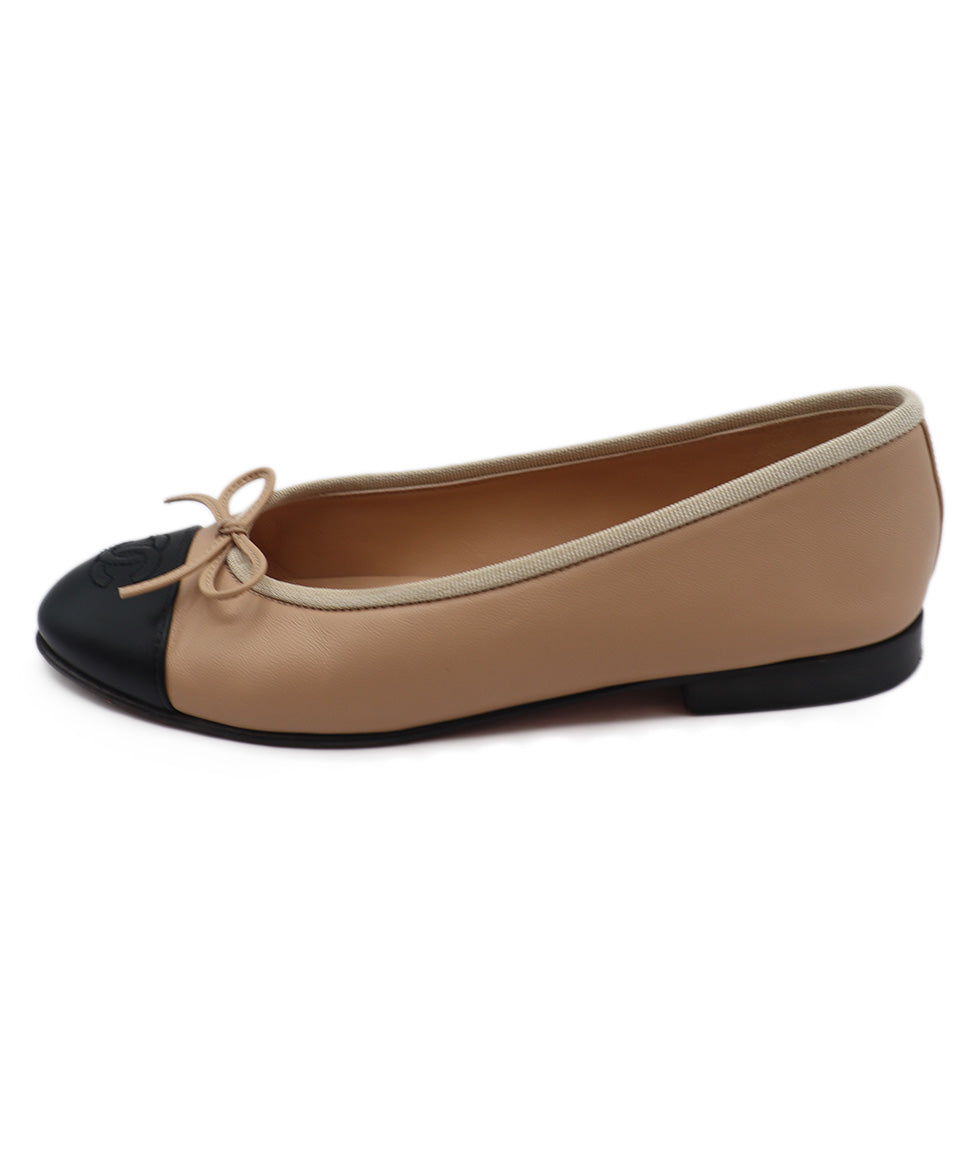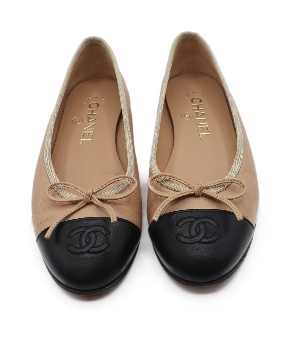Chanel Neutral Beige & Black Leather Ballet Flats Sz. 5.5