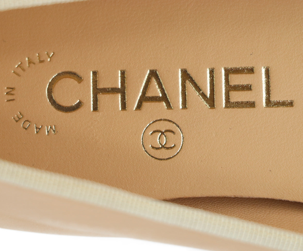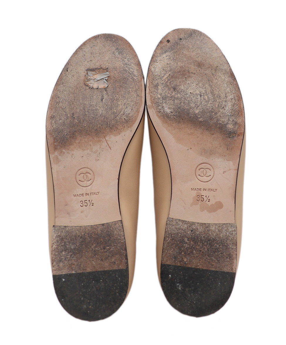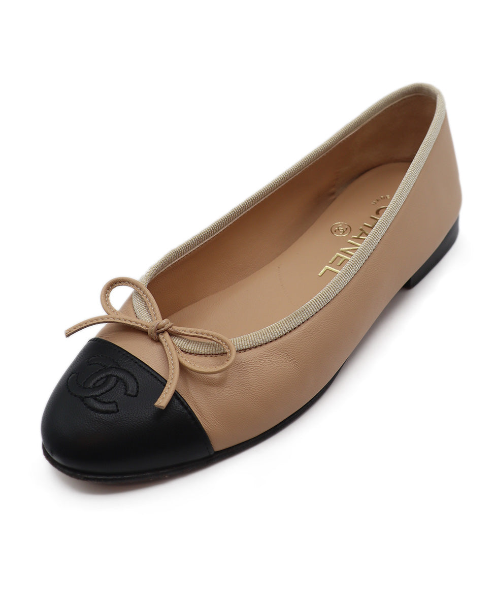 Chanel Neutral Beige & Black Leather Ballet Flats Sz. 5.5