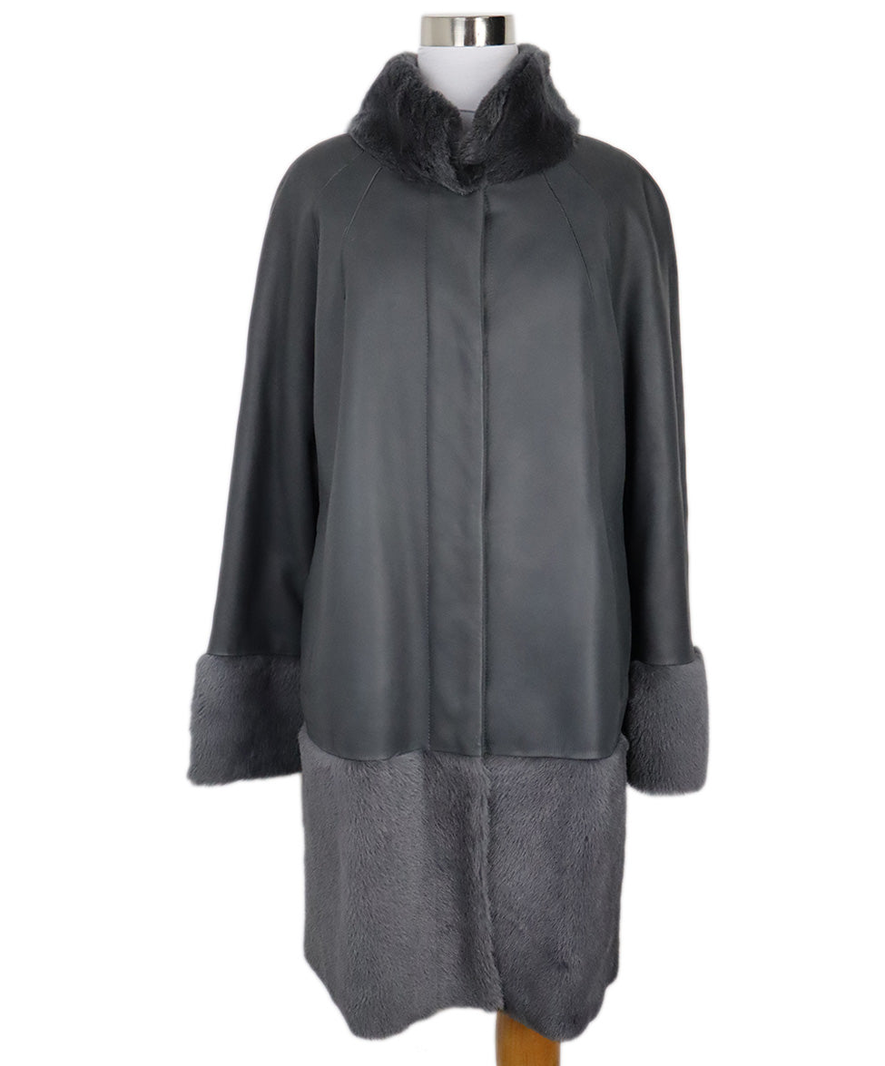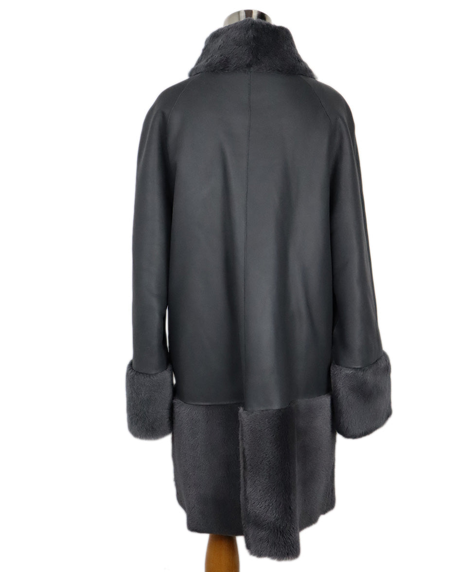 Grey Leather & Shearling Trim Coat sz 10